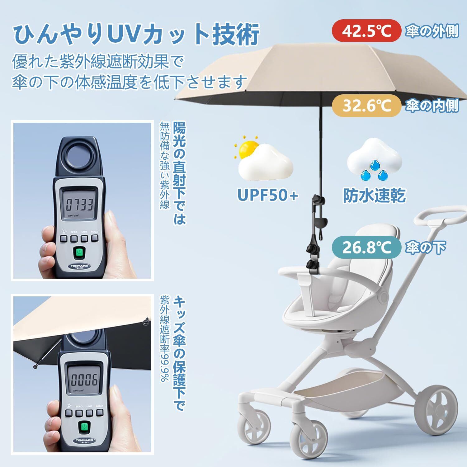 \【人気商品】ベビーカー 傘 日傘 傘立て 傘ホルダー 5折りたたみ傘 8本骨 360°角度調整 傘スタンド 持ち運び便利 設置簡単 ペットカート用 傘立て 自転車 UVカット 防水 熱中症対策 晴雨兼用/