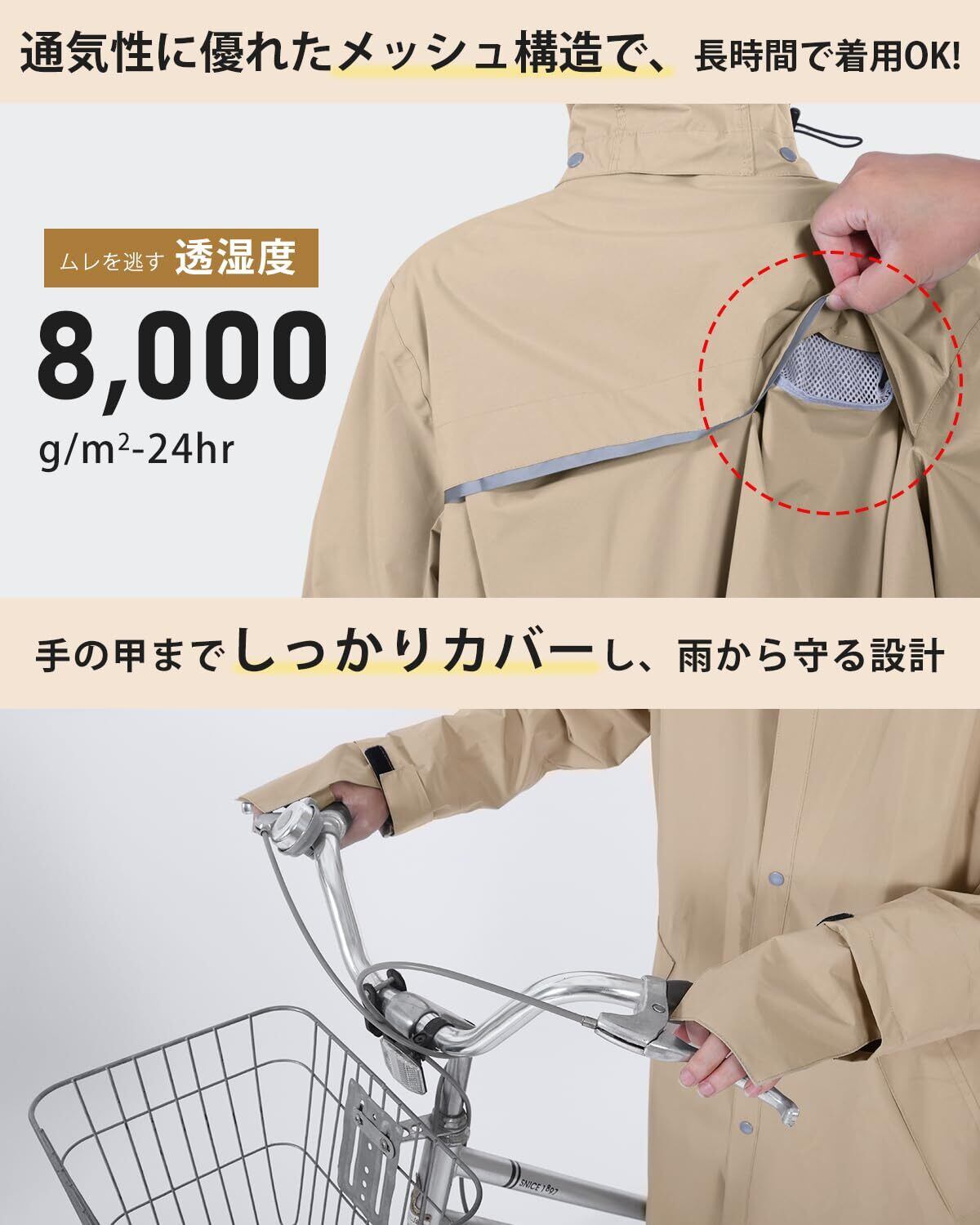 リュックを背負ったままでも楽々着用できる設計で、肩と背中をしっかりカバーします。自転車に乗る際もストレスなく着用できるため、通勤や通学の際にも大活躍します!