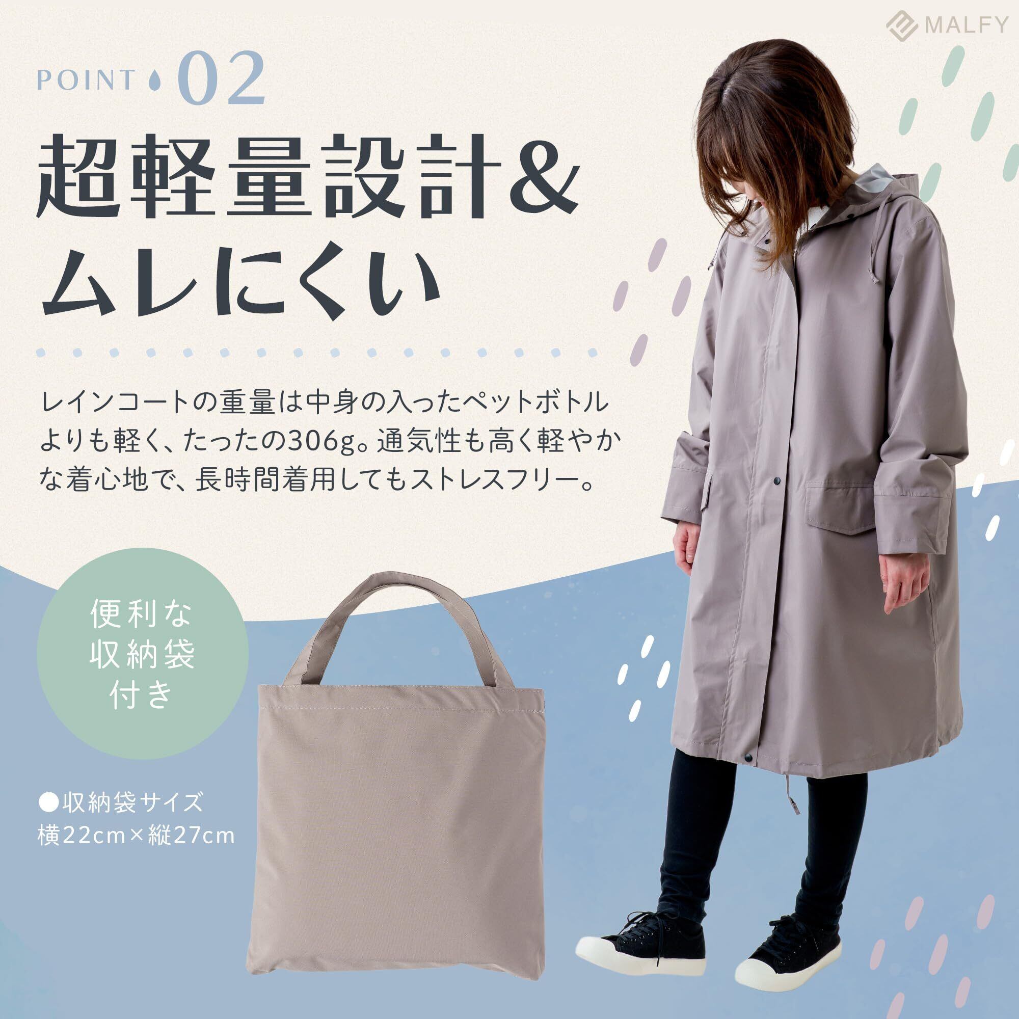 [MALFY] 驚きの撥水力と軽さと柔らかさ【超軽量300g×高耐水圧×高透湿×超撥水】 テフロン撥水加工 リュック対応レインコート 自転車 レインコート レディース ロング丈 耐水圧