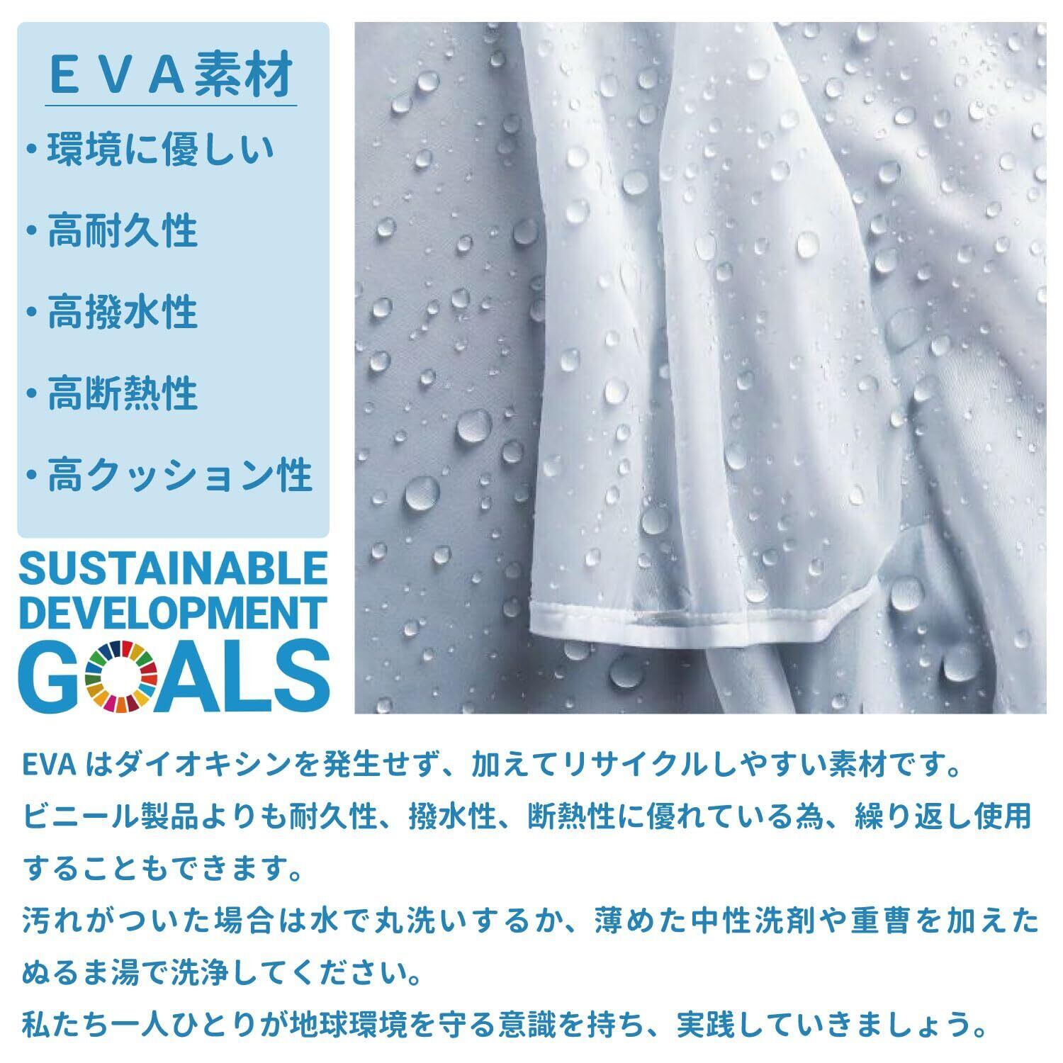 【高耐久性:EVA素材】軽量かつソフトでしなやかな性質を持つEVA素材は、水を吸収しにくく防水性に優れます。また熱を通しにくく雨天時の寒さ対策としても効果を発揮します。二重縫製