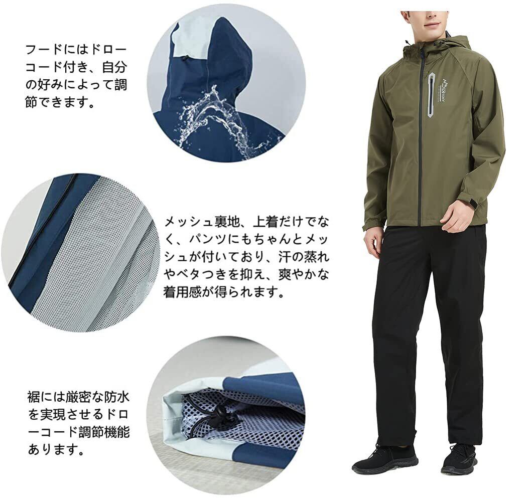 [アラシヤマ] ゴルフ レインウェア メンズ 上下セット バイクのカッパ レインスーツ マウンテンパーカー golf 登山 [防寒・防水・防風] アウトドア ウィンドブレーカー 釣り 自転車 通勤用