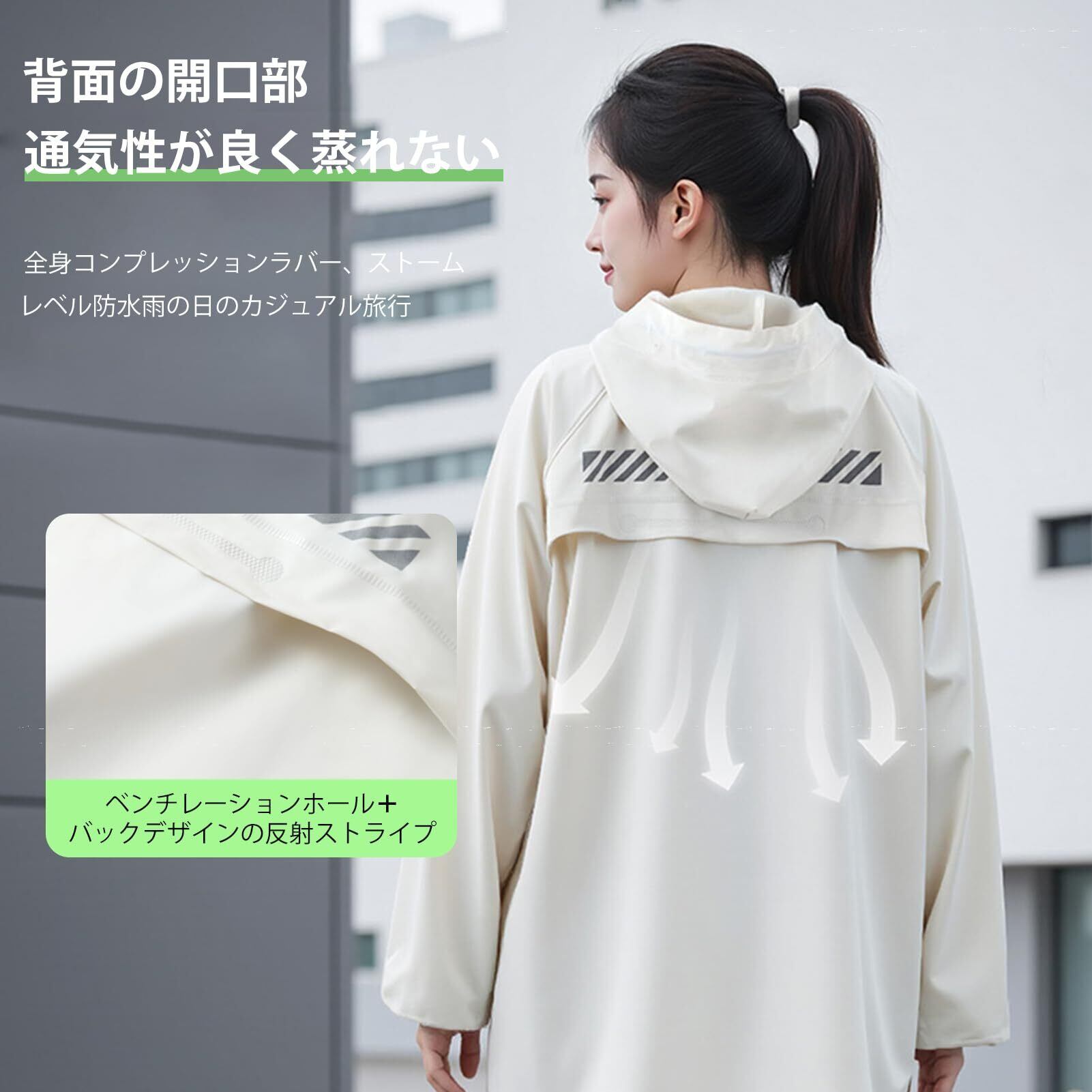 このレインコートは防水性に優れた特別な素材を使用しており、急な雨や風からしっかりと守ります。高耐水圧により、梅雨や悪天候時にも安心してご使用いただけます。バイク通勤や自転車、通学など、様々なシーンでの活躍が期待できます。