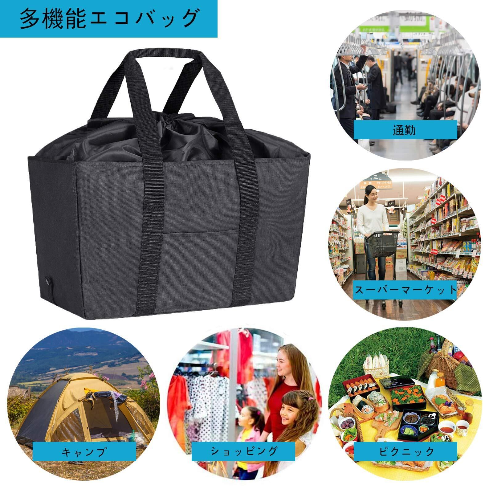 ➤『超大容量』大容量エコバッグサイズは36cm×22cm×26cmで、耐荷重20kg。持ち 手高さは25cm、重い食物または他のものを肩に乗せることができるので持ち運びに 便利です。