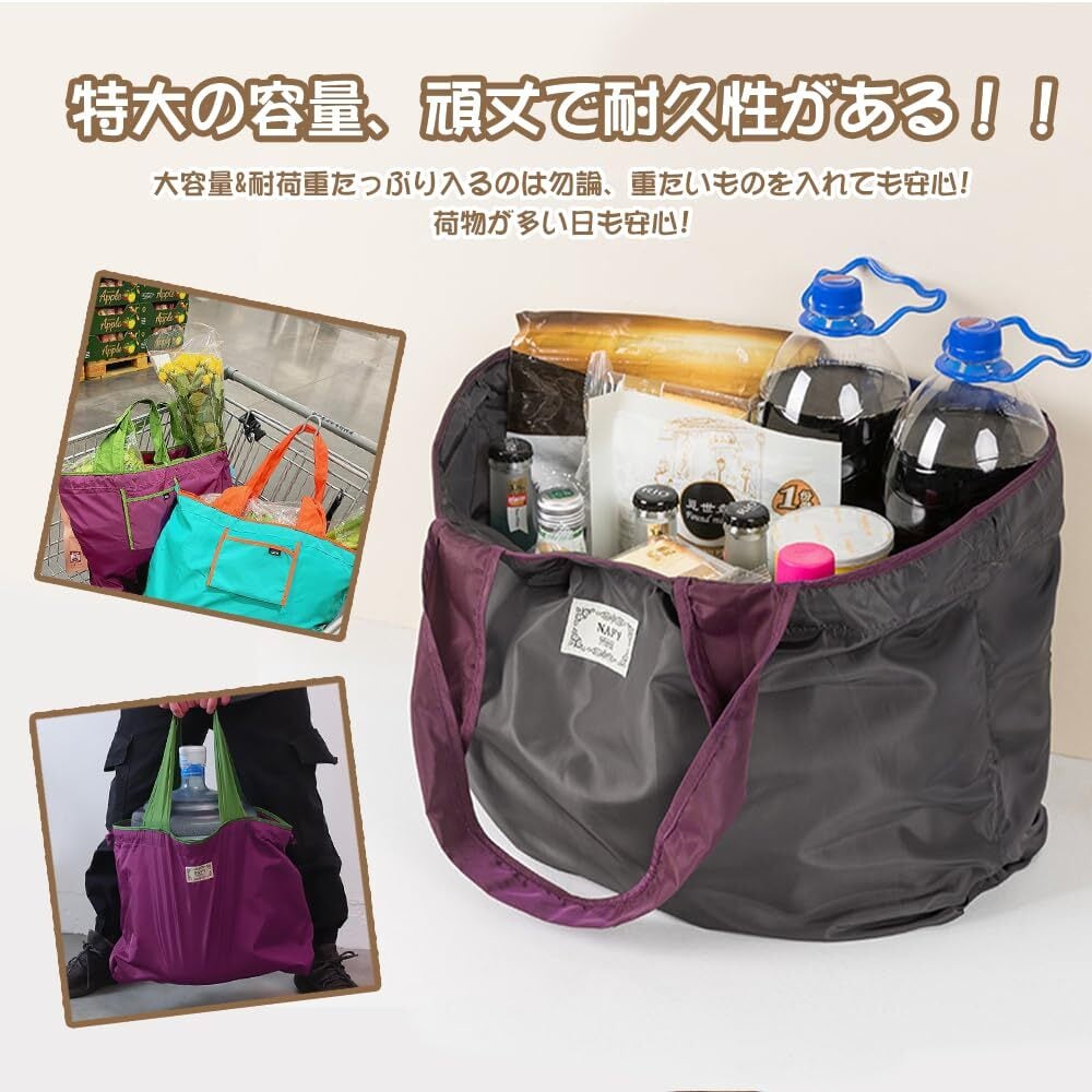 【大容量&耐荷重&畳むサイズ】 耐加重10kg、大きい広げると大容量エコバッグです。手持ちの部分も幅を広く設計して、荷物持ち時の負担を減らすためです。丈夫なポリエステル素材を使用しているので2Lペットボトル5本分10kgの荷物を入れても大丈夫です。大きめのサイズのため、沢山買い物しても余裕を持って入ります。また、持ち手を幅広にしたため、肩に掛けても痛くなる事がありません。そのため旅行の補助バックとしても使えます。