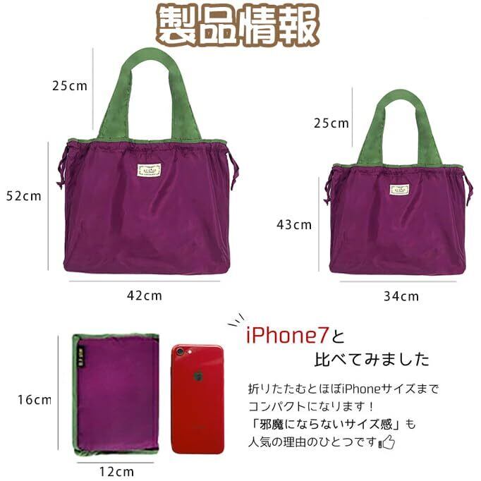 こちらのエコバッグは、MサイズとLサイズの2点セット!大きさを使い分けることで、食材から日用品まで様々なアイテムをしっかり収納できます。コンパクトに折り畳めるので、バッグの中でも場所を取らず便利です。