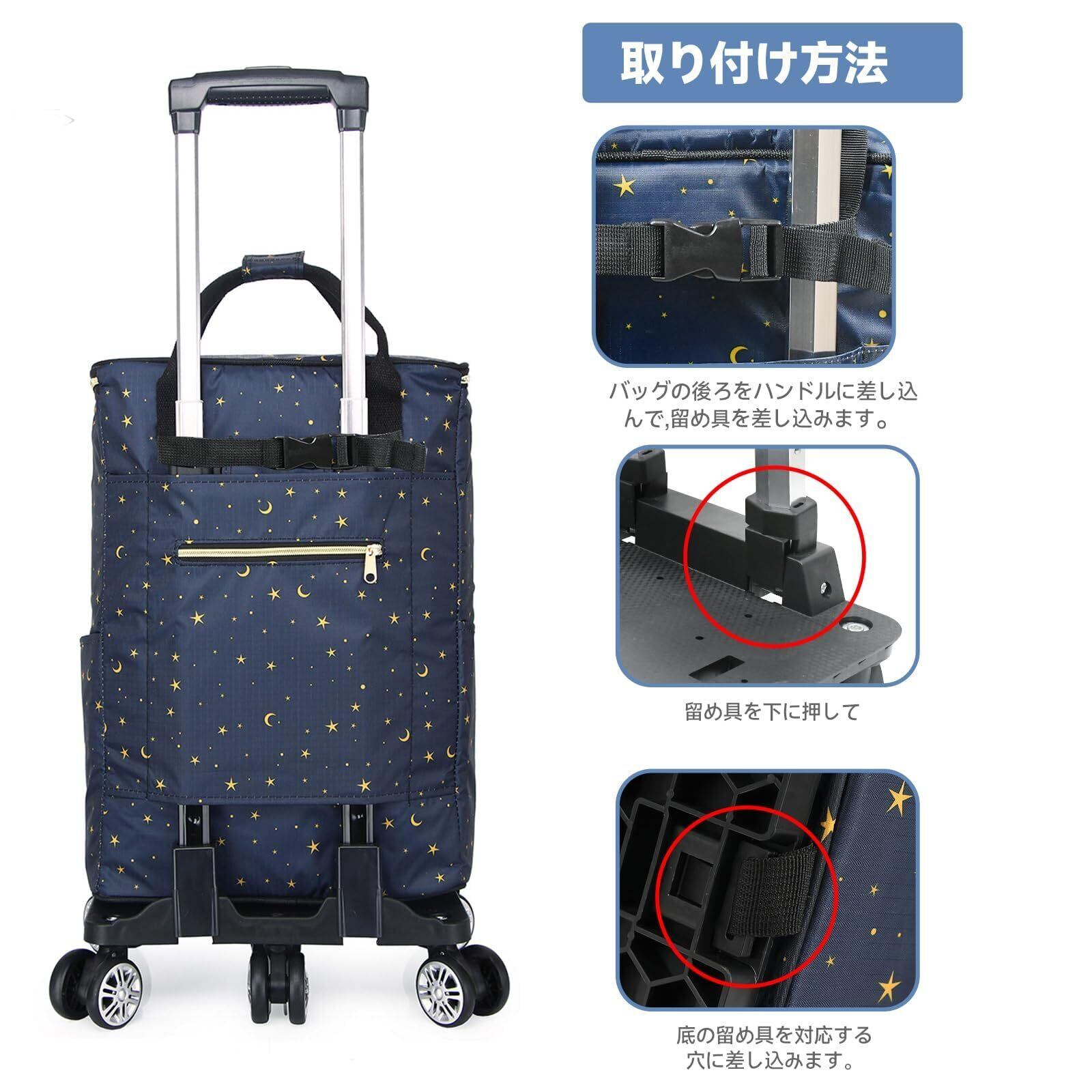 zmayastar 買い物カート 5輪 ショッピングカート 保冷機能付き トートバッグ型 お買い物キャリー キャスター付き 保冷バック 保温 買い物 折り畳み式 軽量 取り外し可能 2WAY 軽量 ハンドル長さ調節3段階 (星, 27L)