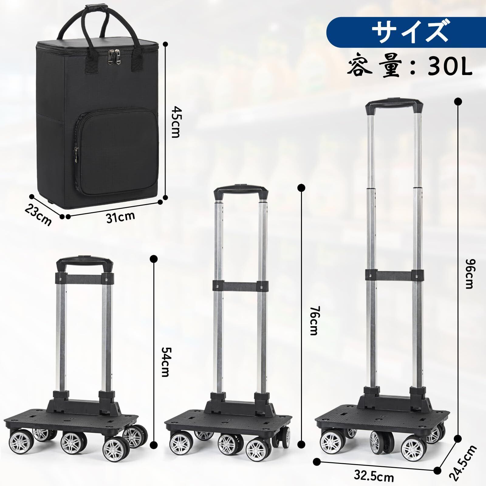 5輪 ショッピングカート ショッピングキャリー 買い物カート 30L 横押し可能 機内持ち込み 軽量 キャリーバッグ 2WAY (Lサイズ ブラック)