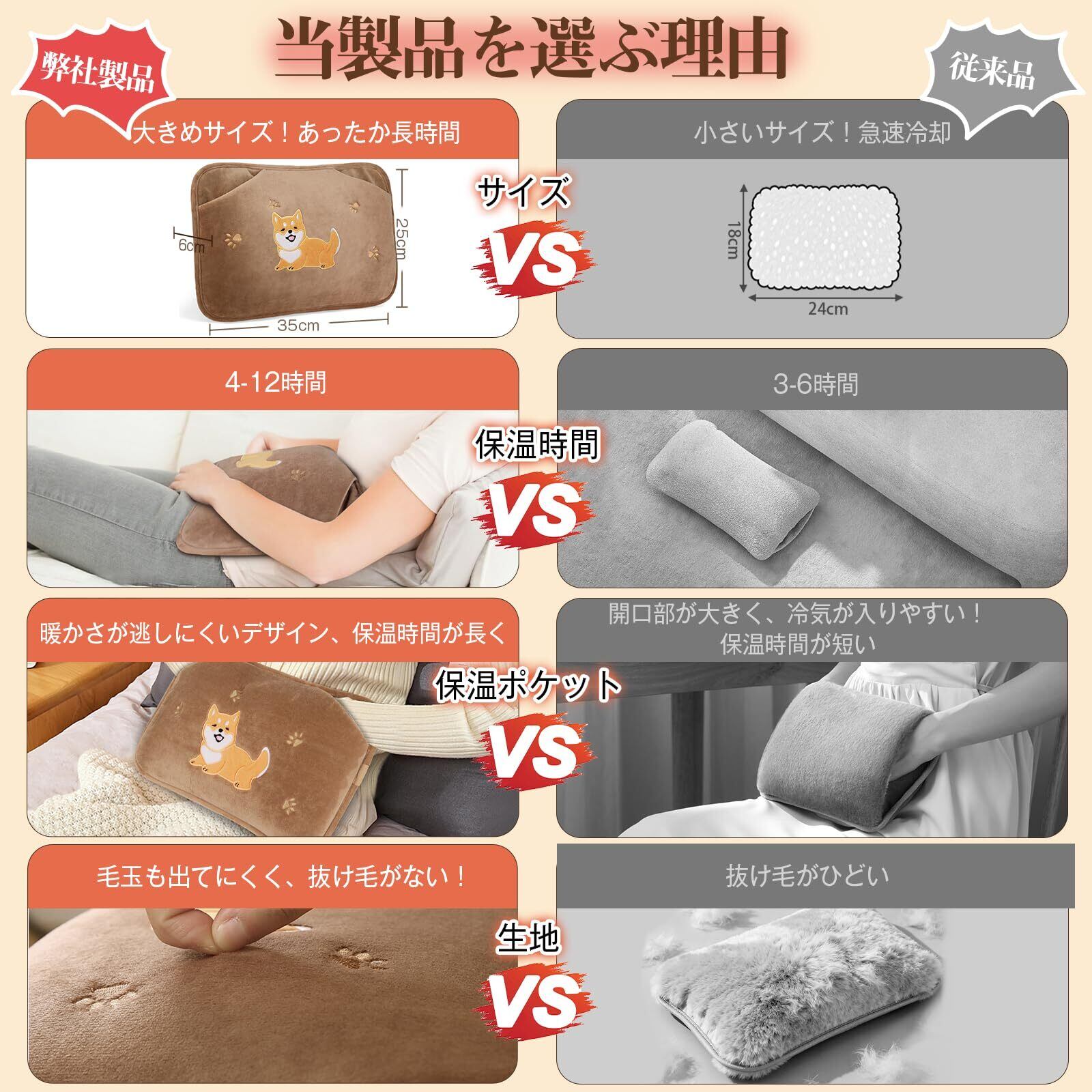 【30日以内の返金・安心・メリット】当商品はご購入日から半年間の安心が付いています。弊店の商品に問題がございましたら、お気軽にお問い合わせください。湯たんぽを使うメリット:❶エコであり、環境に優しい。経済的で電気代の節約になる。家電の暖房器具と比べると手頃な価格でお金の節約になる❷電磁波を起こさないので安心。❸適度の温もりは安眠効果に❹乾燥しないのでのどや肌に優しい【パッケージ内容物 】湯たんぽ本体、保温カバー、防爆充電器、日本語取扱説明書。