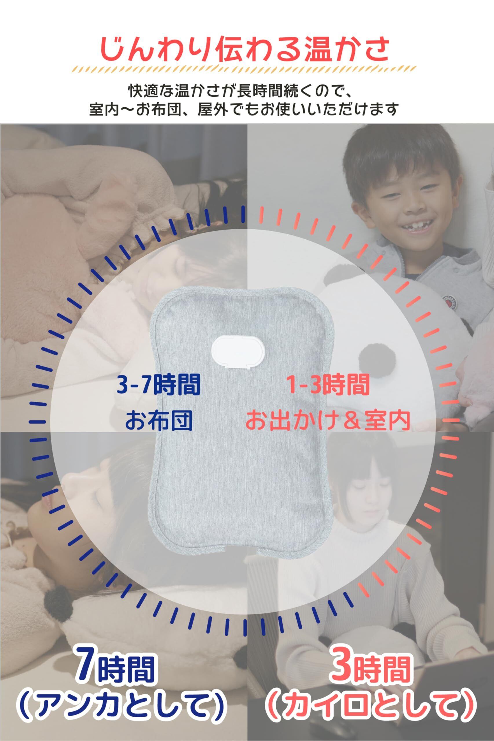 【短時間の充電で長時間温かい】 この可愛い蓄熱式湯たんぽ( 電気湯たんぽ )は、付属のコードで簡単に温められます。 約15分充電するだけで、あんか として最大7時間も温かさが持続する エコ湯たんぽ です。寒い季節にも役立ちます。