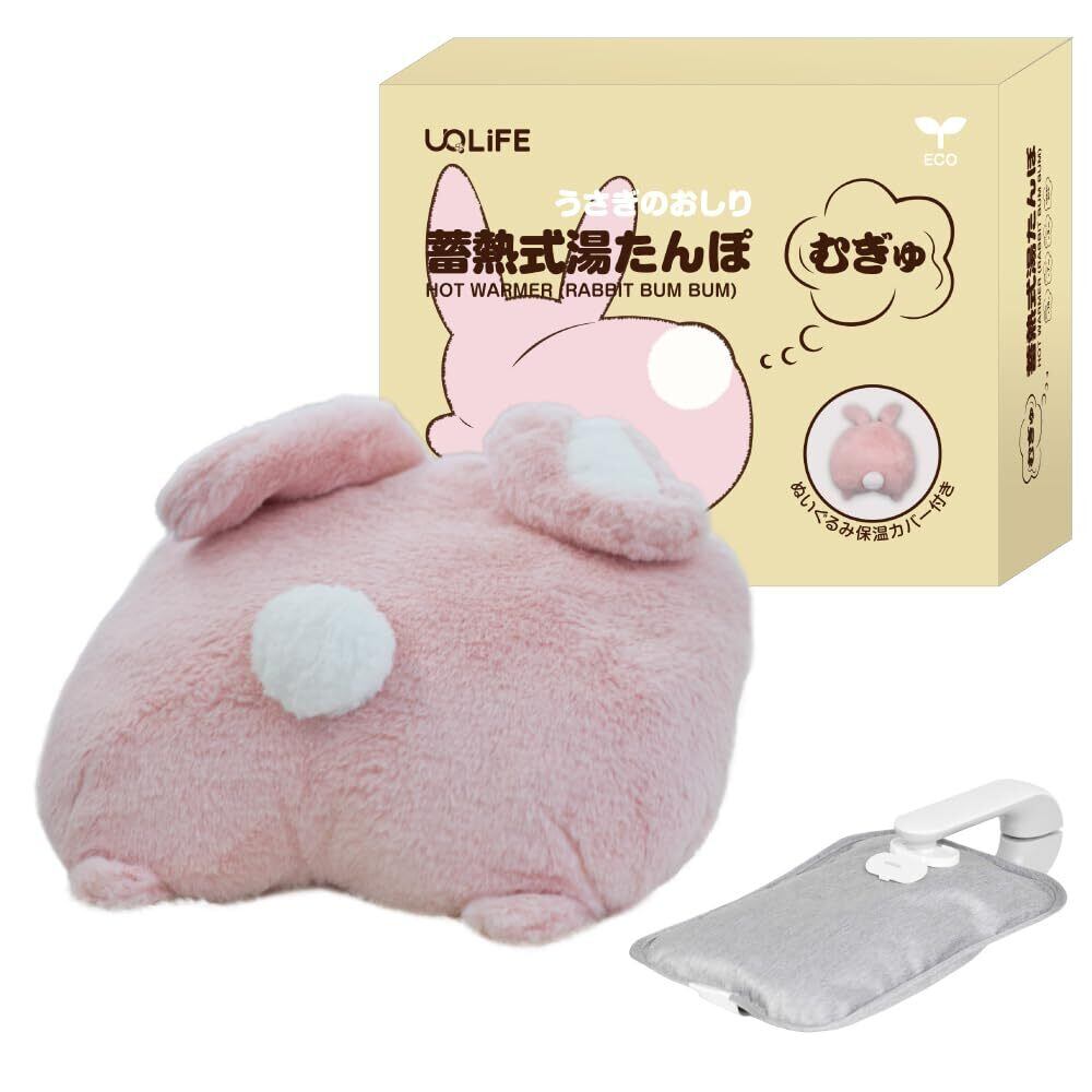 【特価商品】[ UQLIFE ] 蓄熱式湯たんぽ( うさぎ )【 むぎゅっと 可愛い キュートな後ろ姿 】ふわふわとした肌触り 最長7時間保温 湯たんぽ あんか カバー 付き