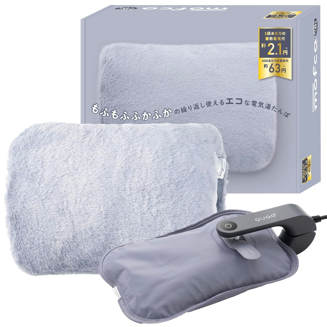 QUADS(クワッズ) モフモフふかふか 蓄熱湯たんぽ mofca モフカ エコ 省エネ 蓄熱10分 最大8時間あたたかさ持続 お湯交換不要 洗濯OK コードレス カイロ あんか (ライトグレー)