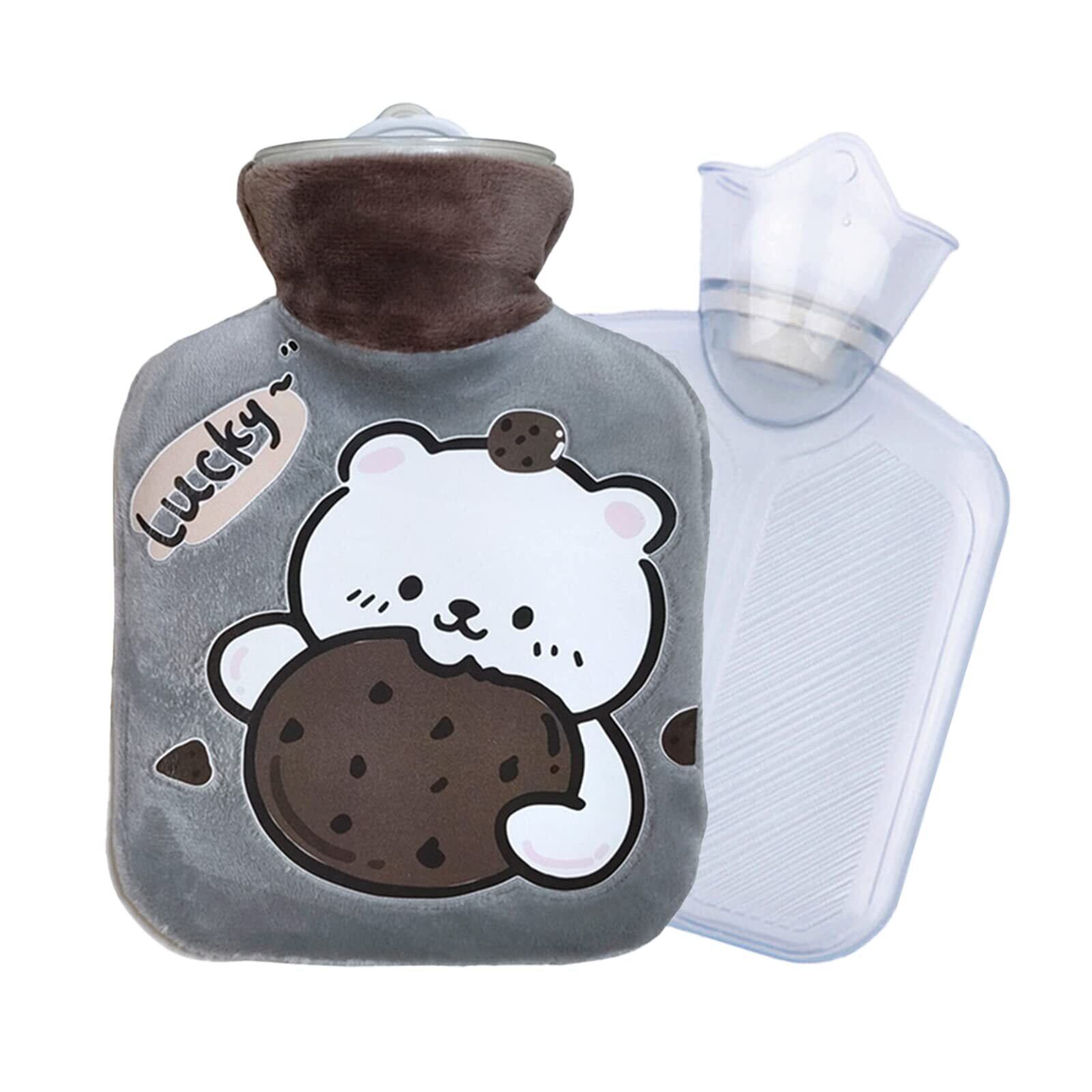 Kaaipee 湯たんぽ ミニ かわいいカバー付き エコ湯タンポ 注水式お湯入れ 小さめ 防寒グッズ 冷え対策 疲れ緩和 生理期最適 携帯ゆたんぽ 250ml グレー