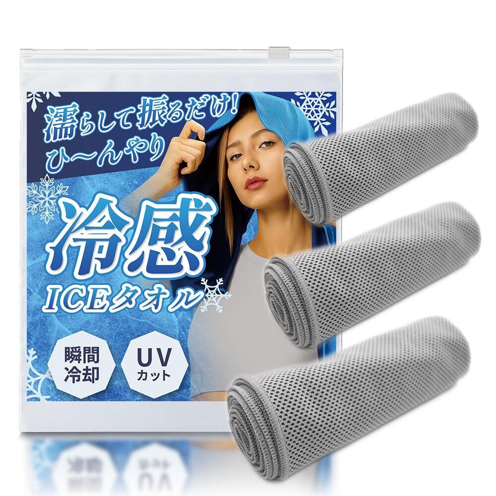 【新着商品】冷感タオル【瞬間冷却-11℃】 アイスタオル クールタオル 接触冷感 ひんやり UVカット 濡らす 冷却 れいかん グッズ 熱中症対策 暑さ対策グッズ 軽量 携帯用 スポーツ観戦 フェス アウトドア 屋外 3枚セット NOMAW (【単色】ライトグレー)