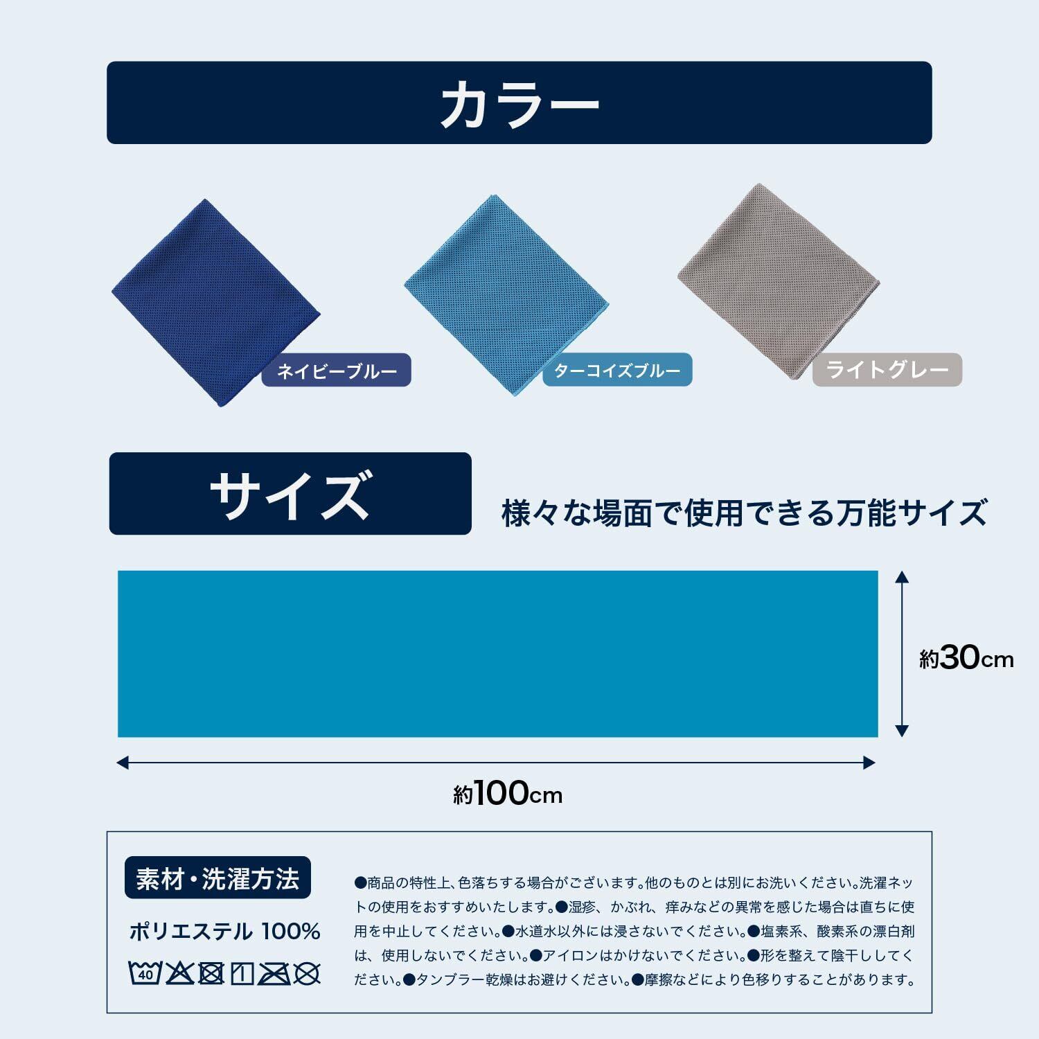 冷感タオル【瞬間冷却-11℃】 アイスタオル クールタオル 接触冷感 ひんやり UVカット 濡らす 冷却 れいかん グッズ 熱中症対策 暑さ対策グッズ 軽量 携帯用 スポーツ観戦 フェス アウトドア 屋外 3枚セット NOMAW (【単色】ライトグレー)