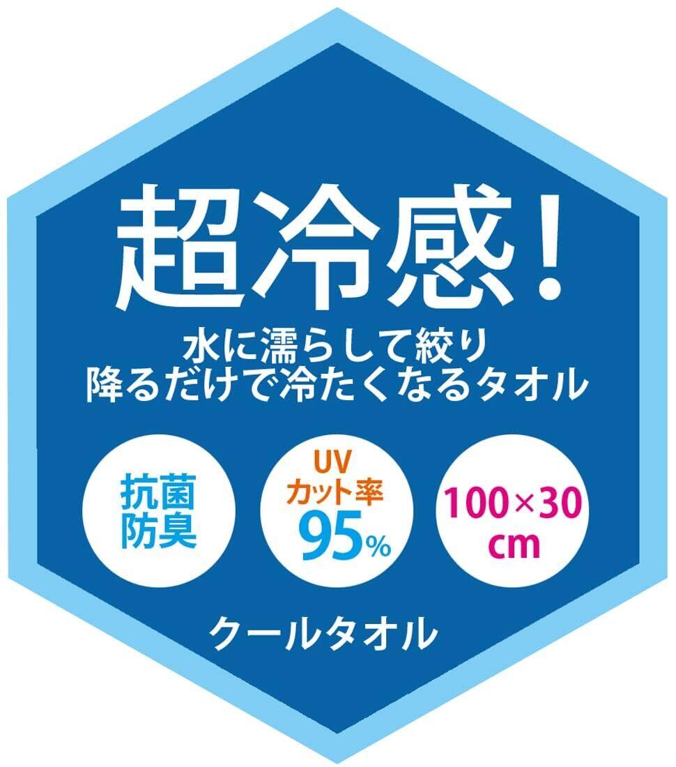 超冷感 水に濡らして絞り振るだけで冷たくなるクールタオル <br>UVカット率95%なので日焼け防止にも効果有り