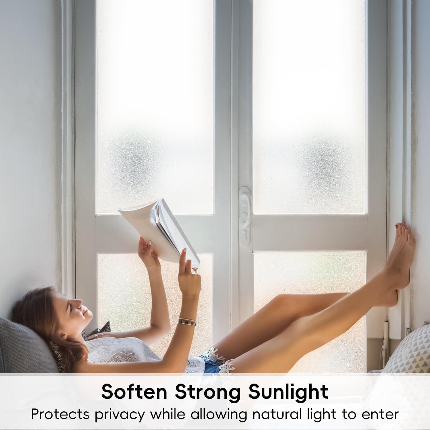 【目隠し、プライバシー保護】⇒ 窓 フィルム 20cm以上離れていれば、天気や昼夜を問わず、室内が見えにくいです。外からの視線を遮りながら、かつ、充分に外の光を室内に取り込めます。明るさを保つと共に視線遮断:室内の採光もよく取れるだけではなく、昼でも夜間でもしっかりとプライバシーを守り、カーテンで暗すぎる部屋の閉塞感や窮屈感から解放し、明るくて心地よいお部屋になります。透明窓ガラスをくもりガラスにできるお手軽シートです。防水機能付きますので、浴室、キッチンなどの滑らかなガラス表面にも適用です。