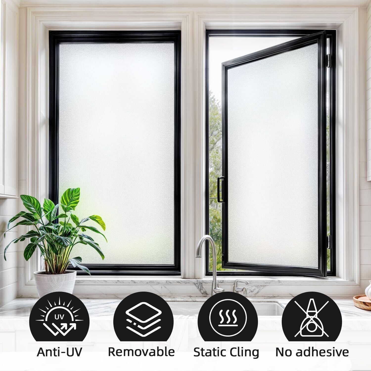 DIFIT 窓 めかくしシート 窓ガラス 目隠しシート 窓用フィルム すりガラス調 断熱シート 窓 遮光シート ガラスフィルム 結露防止 飛散防止 UVカット 浴室 風呂 玄関目隠し 水で貼る 貼ってはがせる 外から見えない 曇りガラス (44.3 x 200cm)