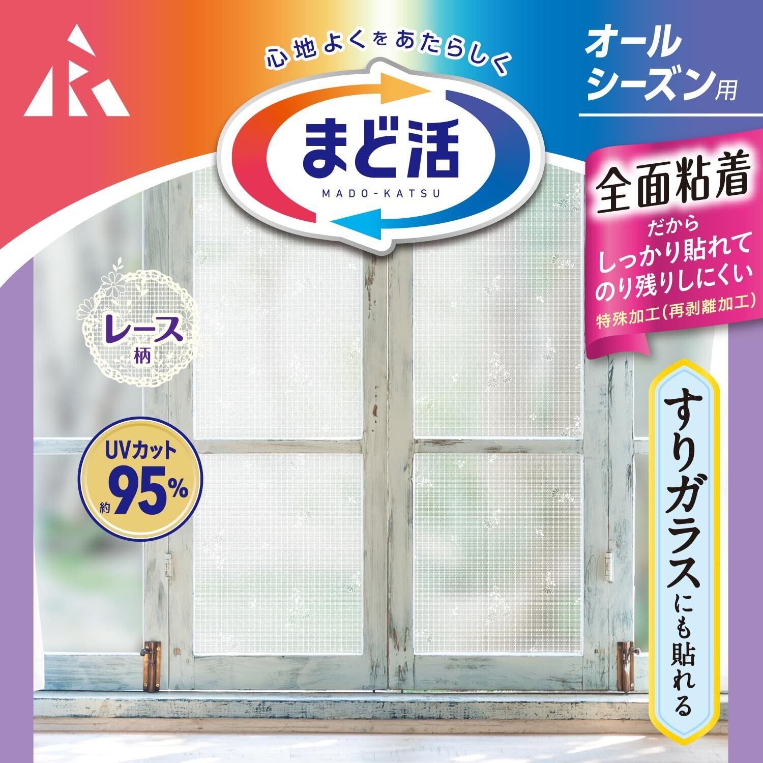 【特価セール】アール(R) 水もテープもいらない マドピタシート (日本製/すりガラス対応/全面粘着) 4層構造で冷暖房効率アップ (UVカット/結露抑制/窓ガラス飛散防止) カット可能 レース 90×180cm H-152