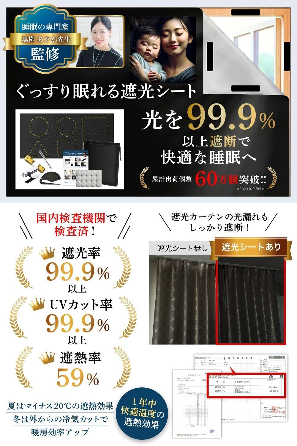 ・【睡眠の専門家が認めた「ぐっすり眠れる遮光シート」】年間250組以上の親子を快眠に導く「こどもの寝かしつけ専門ナース」黒柳あやか先生の監修による製品です。光を99.9%以上遮断し、外の光を完全にシャットアウトできるので、光に敏感な赤ちゃんや子どもの睡眠環境も整えます。さらに、国内試験機関で実証された高い遮光性能により、ご家族全員の睡眠の質を大幅に向上させることが期待できます。