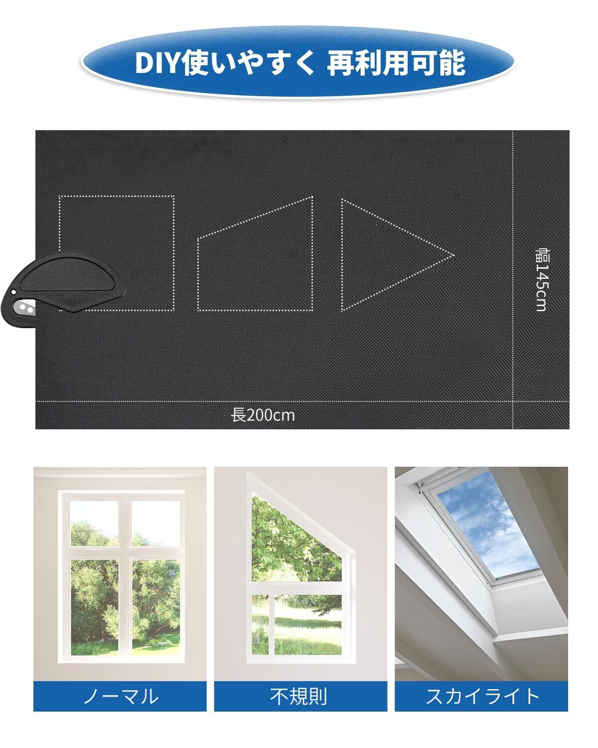 遮光シート 真っ黒 窓 布 窓遮光シート 窓ガラス目隠しシート 420dオックスフォード 遮熱 UVカット 紫外線カット 張りやすいし剥がしやすい 日よけ断熱 防犯 浴室 風呂場 ガラス 日本語説明書 (1.45x2M)