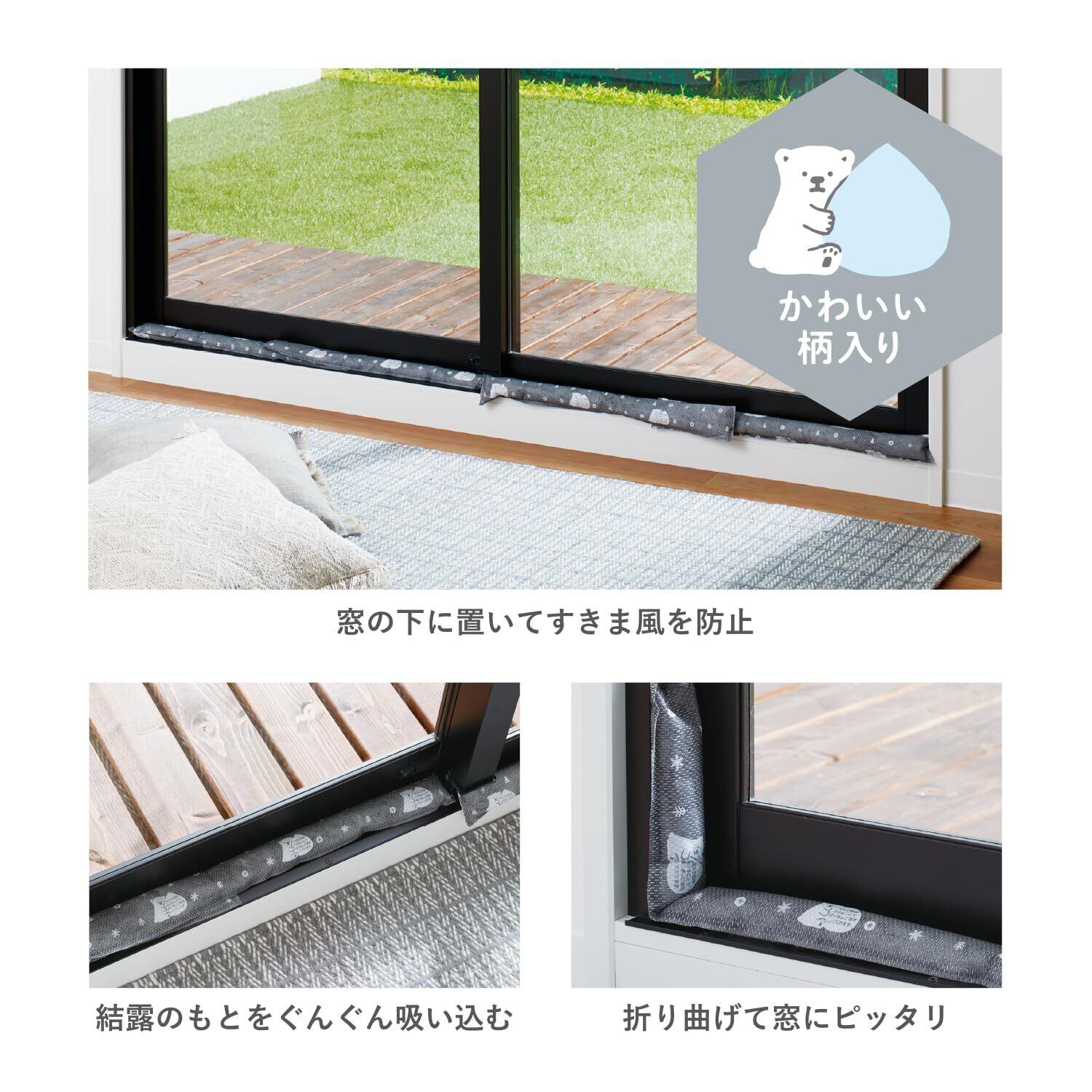 窓の下に置くだけで結露の元となる湿気を吸収。すきま風を防ぐ。天日干しすることで効果が復活。繰り返し使える。折り曲げて小さな窓にもピッタリ。