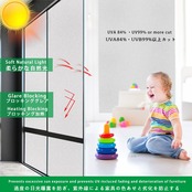 このフィルムはUVカット機能も備えており、日差しから大切な家具や家族を守ります。また、強化ガラスに貼ることで、万が一外からの衝撃があってもガラスの飛散を防止し、安全性を高めます。浴室や玄関での使用にも最適な商品です!