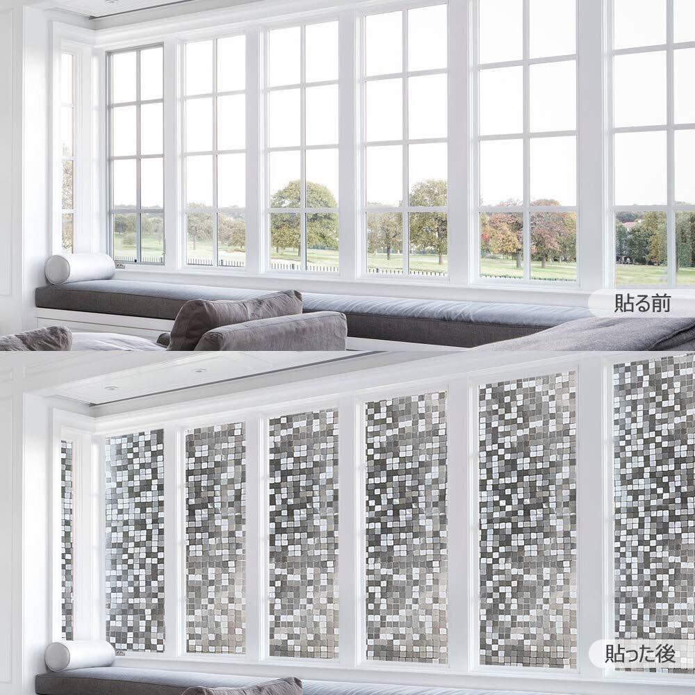 Rabbitgoo 窓 めかくしシート ガラス 窓用 フィルム 目隠し 遮光 断熱 結露防止 リメイク 日よけ 風呂 浴室 食器棚 ベランダ 窓ガラス 目隠しシート 断熱シート 結露防止シート 窓用フィルム シート シール ステンドグラス すりガラス 貼ってはがせる 窓に貼るカーテン 外から見えない おしゃれ (モザイクタイル 44.5 x 200cm)