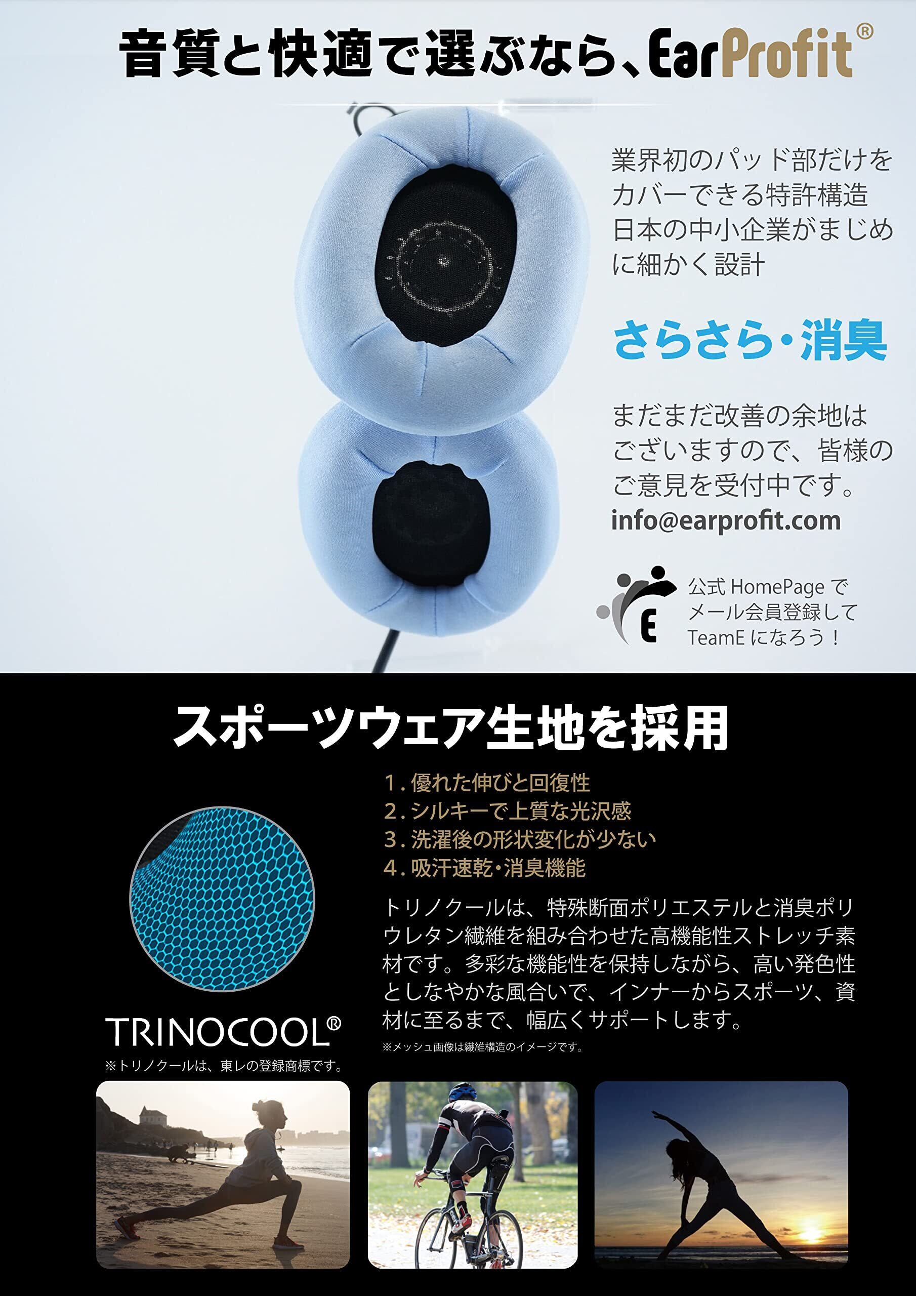【こちらの商品はEarProfit Ver1になります。】【パッドに簡単装着で、耳を圧迫しないのに、さらさら・消臭!】新しいカタチのヘッドホンカバーEarTouchが大幅に進化しました!Makuakeで455%の達成率で成功した話題の新作です!【生地はトリノクールでとても気持ちいい! 】(※東レの登録です)/特徴①高い伸縮性(3D方向に自在に伸縮)/特徴②吸汗速乾性 /特徴③高い消臭機能(消臭繊維使用)/特徴④手洗い可能 /特徴⑤国産製【パッドだけをカバーできる設計(技術)=他社では真似できません。】 特徴①開口部をふさがない/特徴②音質を阻害しない【だから】 ・いつも快適サラサラでムレベタつきがなくなった! ・手洗いできていつも清潔にできる! ・音質を重視する人でも安心! ・様々なヘッドホンに対応可能で楽しい! ・内部センサーを邪魔しない唯一のカバー! ・ムレベタつきを気にせずGAMEに没入できる! ・化粧やヘアワックスがパッドに付かないので、ヘッドホンを清潔に保てます!