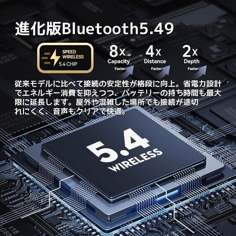 【2025進化版&Bluetooth 5.49】ケーブルの束縛から解放され、まるで空間が広がったかのような臨場感溢れる音楽体験を提供する次世代ワイヤレスBluetoothイヤホン登場!繊細で滑らかな音の再現に優れる革新的なAAC、SBCデコード技術と、迫力満点の重低音を得意とする高性能10mmダイナミックドライバーを組み合わせ、深みのあるリズムで高解像度の音質を忠実に再現します。この音楽ファン向けのイヤホンは、図書館、電車、または自宅で、高クオリティかつリアルなビデオをお楽しみいただけます。Bluetooth 5.49は、Bluetooth 5.0と比べて、データ転送速度が大幅に向上し、複雑な環境下での信号安定性と効率性が飛躍的に進化しました。これにより、イヤホンBluetooth接続は超低遅延で安定し、バッテリー消費も削減され、幅広いアプリケーションに対応します。また、10m以内でメモリ機能で自動ペアリング!このブルートゥース イヤホンを見逃すな!