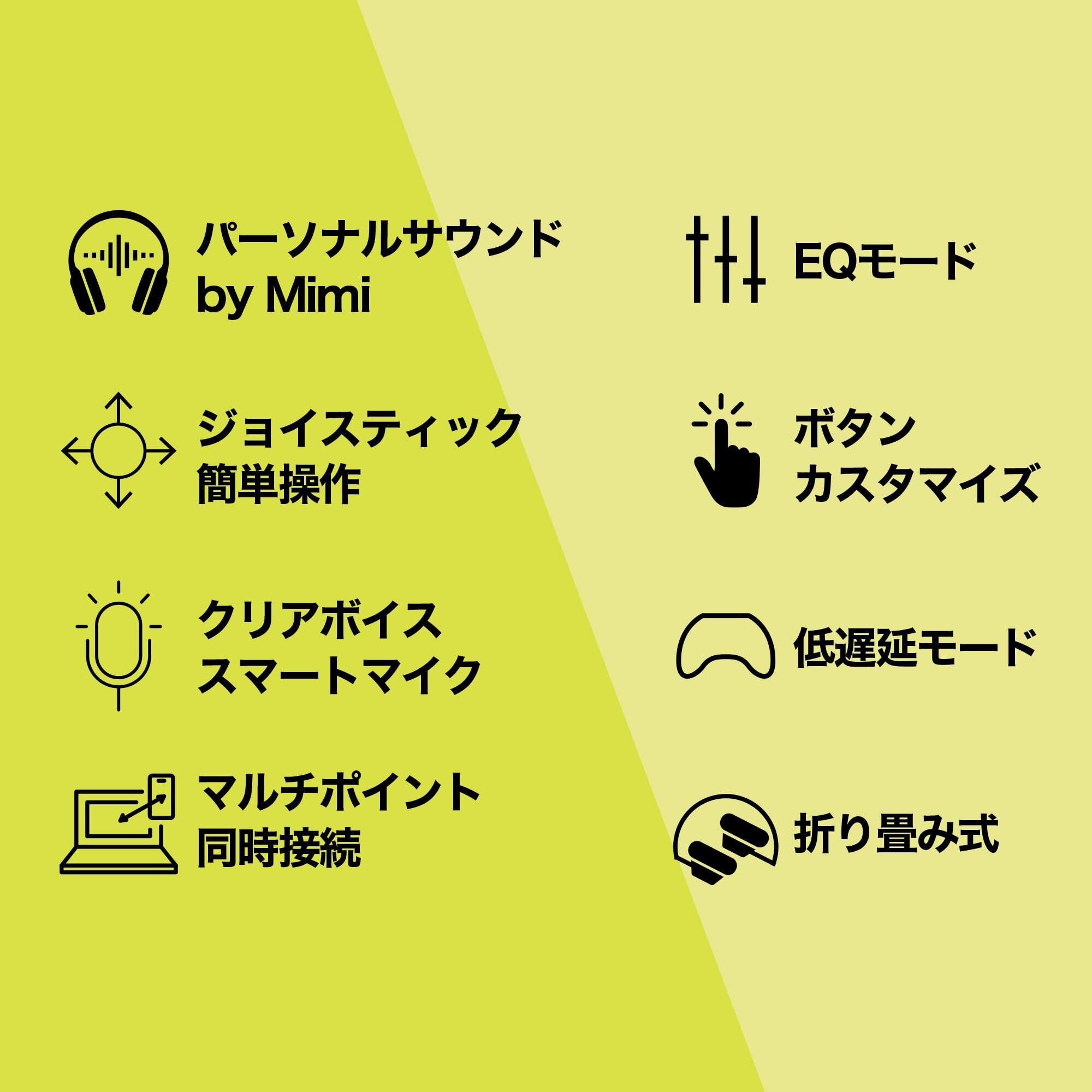 Mimiのパーソナルサウンドは、あなた専用の理想的な音質を提供します。Skullcandyアプリ内で聴力を測定し、結果に基づいたサウンドプロファイルを作成。そのプロファイルはヘッドホンに直接保存され、あなたの聴力に合わせて聞き取りにくかった音や今まで聞こえなかった音を補正します。これにより、新次元の音楽体験を実現し、集中力を高めてあなたの世界を広げます。※Mimiは、2022年に150カ国以上で100万台以上のデバイスに導入され、200万件以上の聴力テストを実施した市場No.1のデジタル聴力テストアプリです。(Mimi公式HPより)