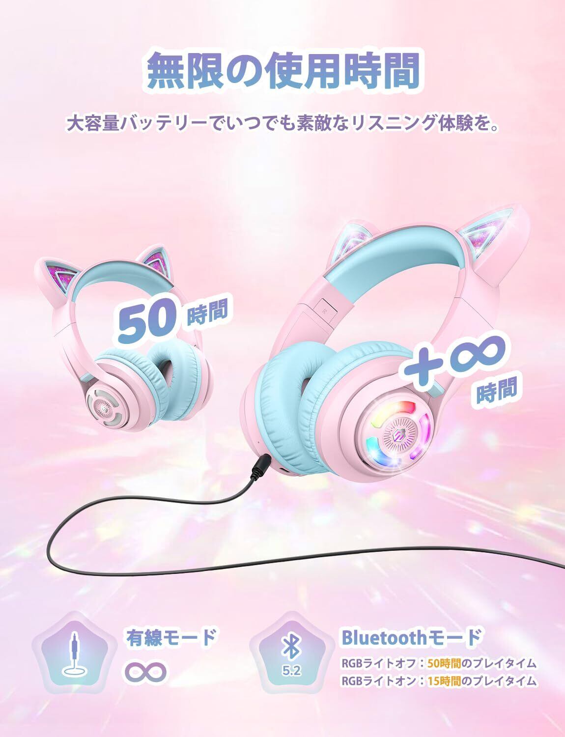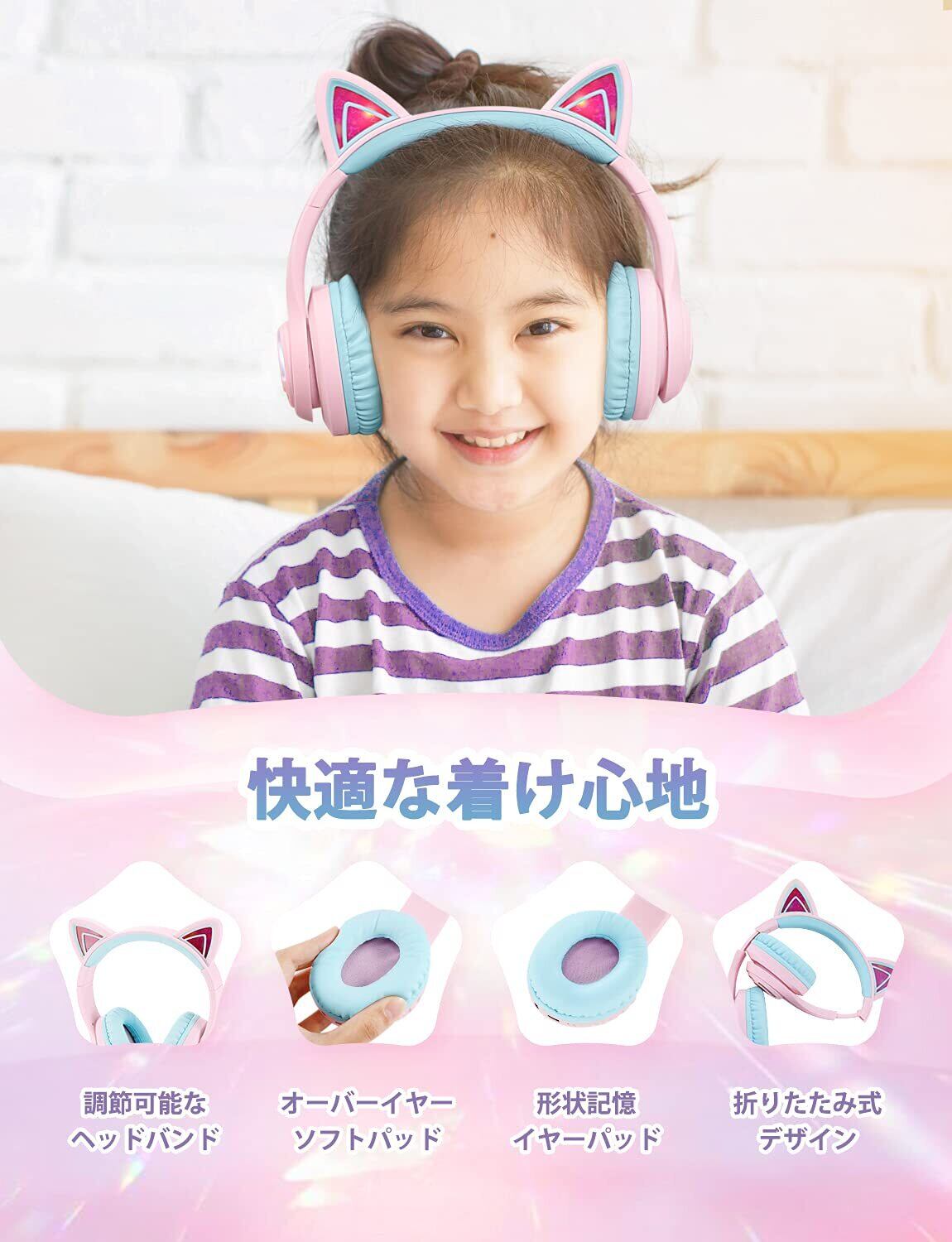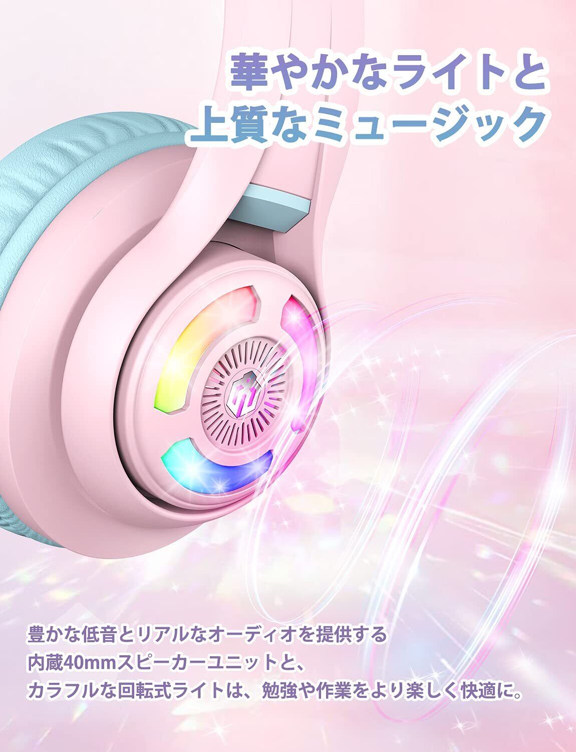 iClever 子供用ヘッドホン Bluetoothヘッドフォン 猫耳LEDライトアップワイヤレスキッズヘッドフォン 音量制限付き(74/85 dBA) 45Hプレイタイム マイク付き 学校/タブレット/PC用 BTH13 ピンク