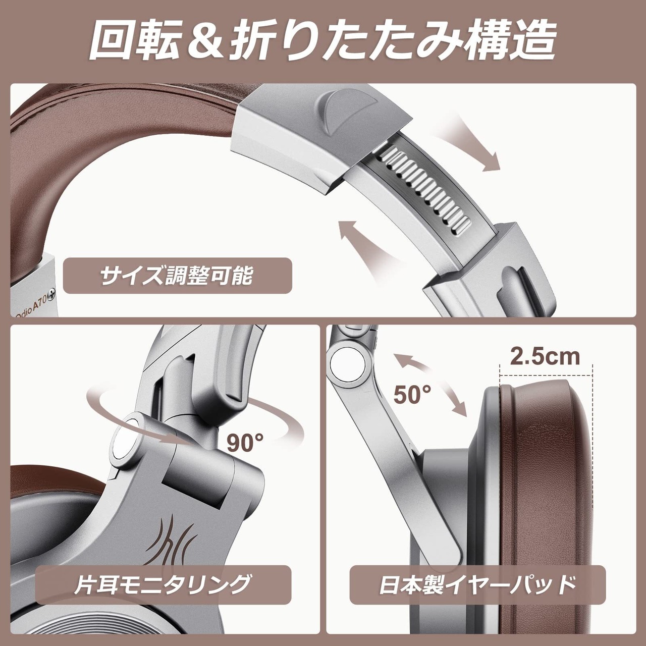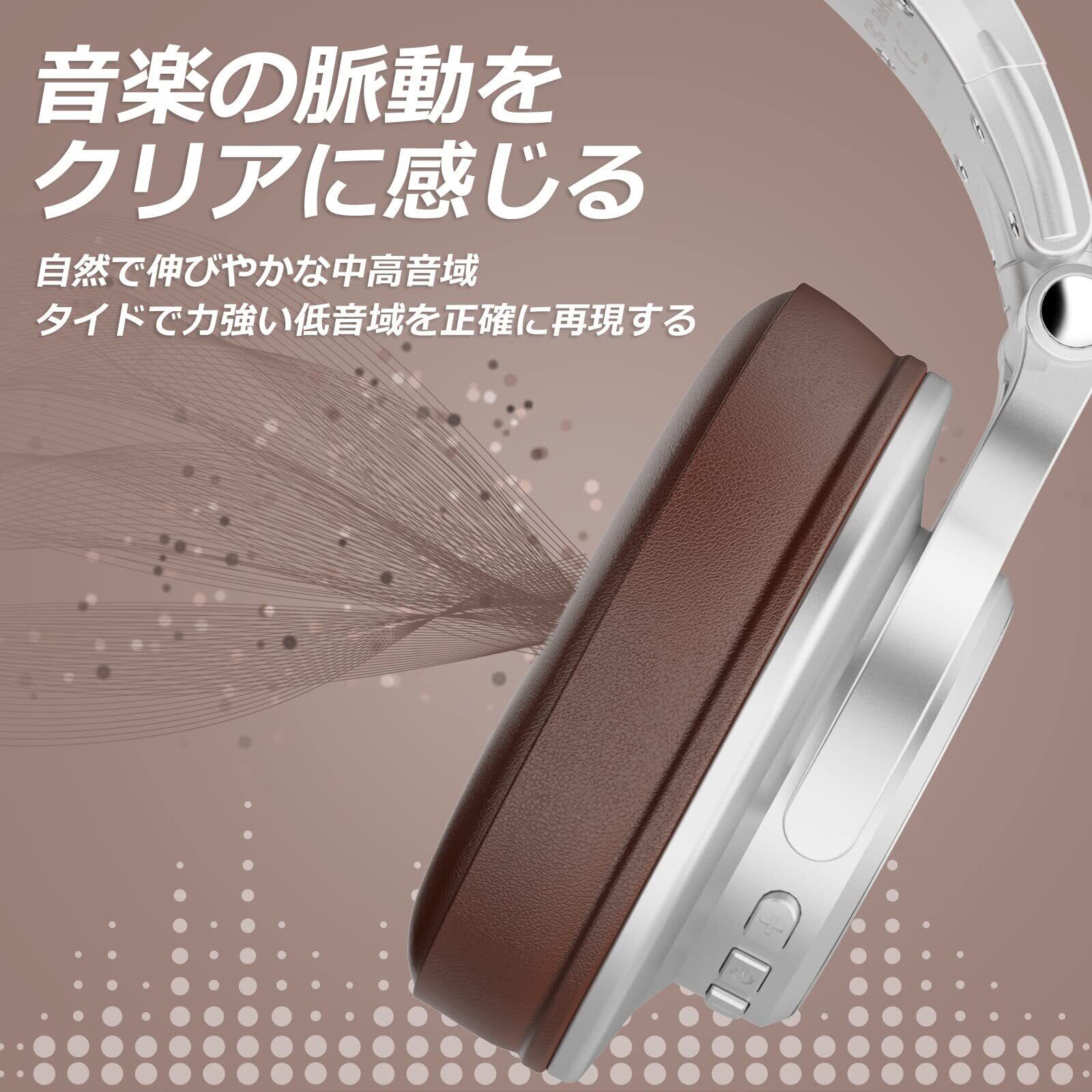 OneOdio ヘッドホン Bluetooth 5.2 ワイヤレスヘッドホン 72時間再生 密閉型 マイク付き AAC対応 DJ用 モニターヘッドホン 音楽鑑賞 楽器練習 スタジオ 音源ミックス シルバー