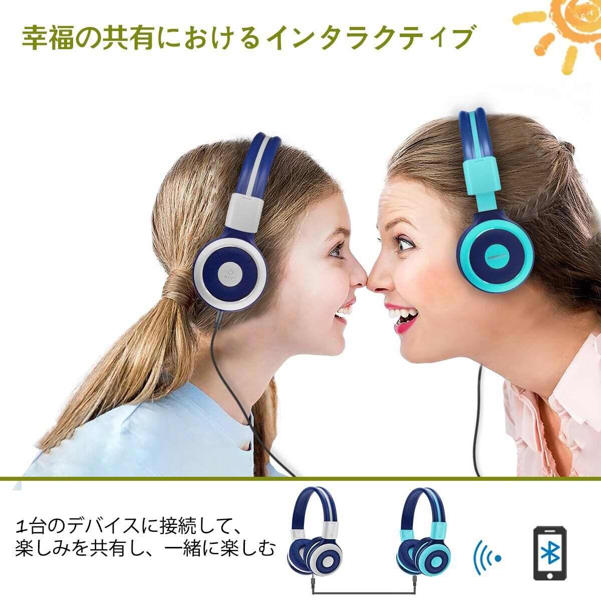 SIMOLIO 子供用 ワイヤレスヘッドフォン Bluetooth5.0 ヘッドセット 通話マイク付き 音量制限 聴覚保護 共有ポート 折りたたみ式 有線無線両用 ヘッドホン ゲーム機タブレットPC音楽用 ブルー 712M