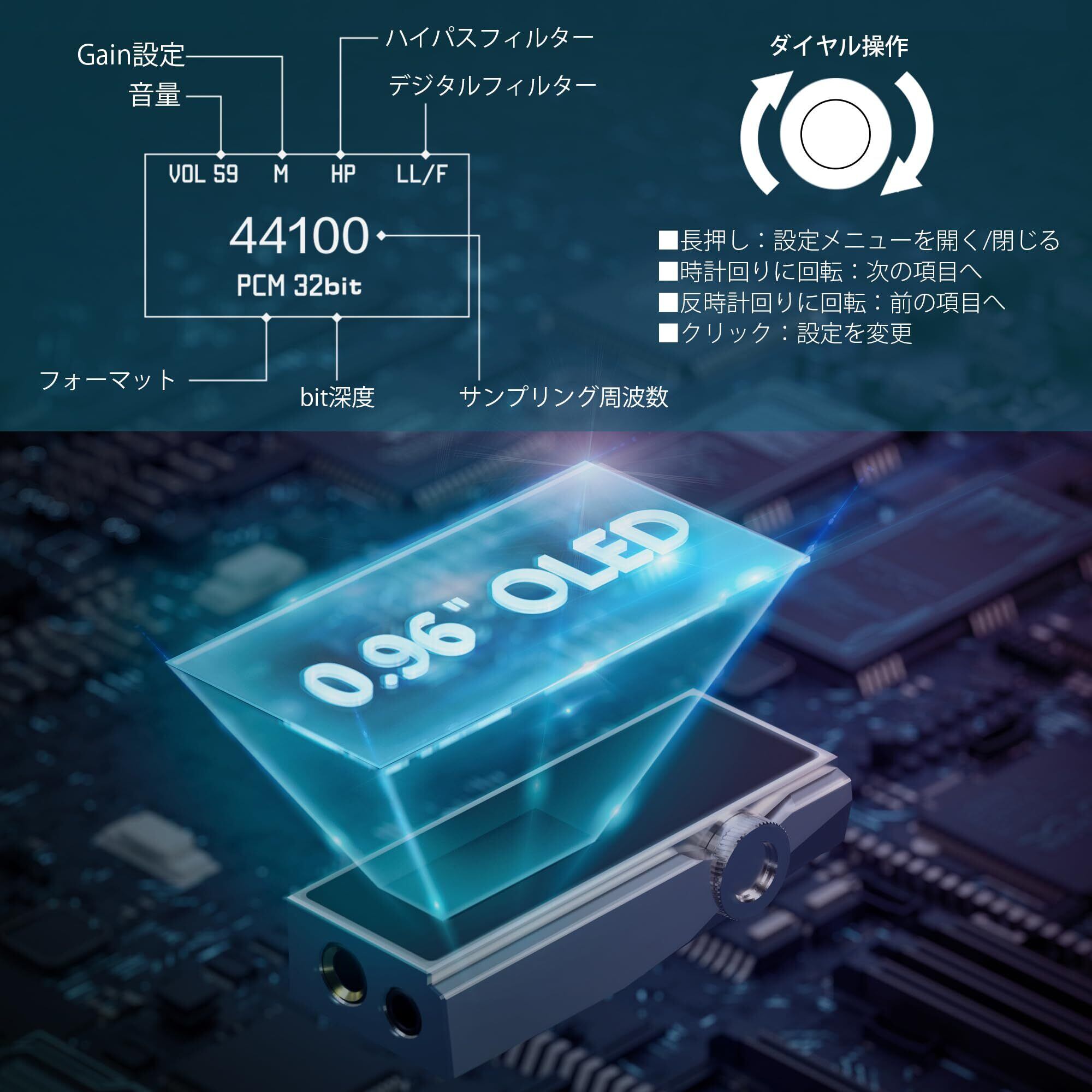 この小型DAC/AMPは、スリムでスタイリッシュなデザインが特徴です。ポケットに入るサイズですので、どこでも気軽に高音質を楽しむことができます。外出先でもあなたの音楽を手放さずにお楽しみいただけるアイテムです!