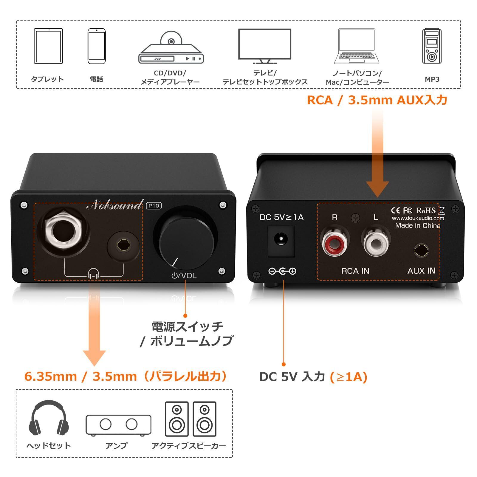 Nobsound P10は、6.35mmと3.5mmのデュアル出力を備えています。これにより、様々なヘッドフォンやイヤフォンに適応し、多彩なリスニングスタイルを楽しむことができます。また、コンパクト設計で、どんな場所でも気軽に利用できるのが魅力です!