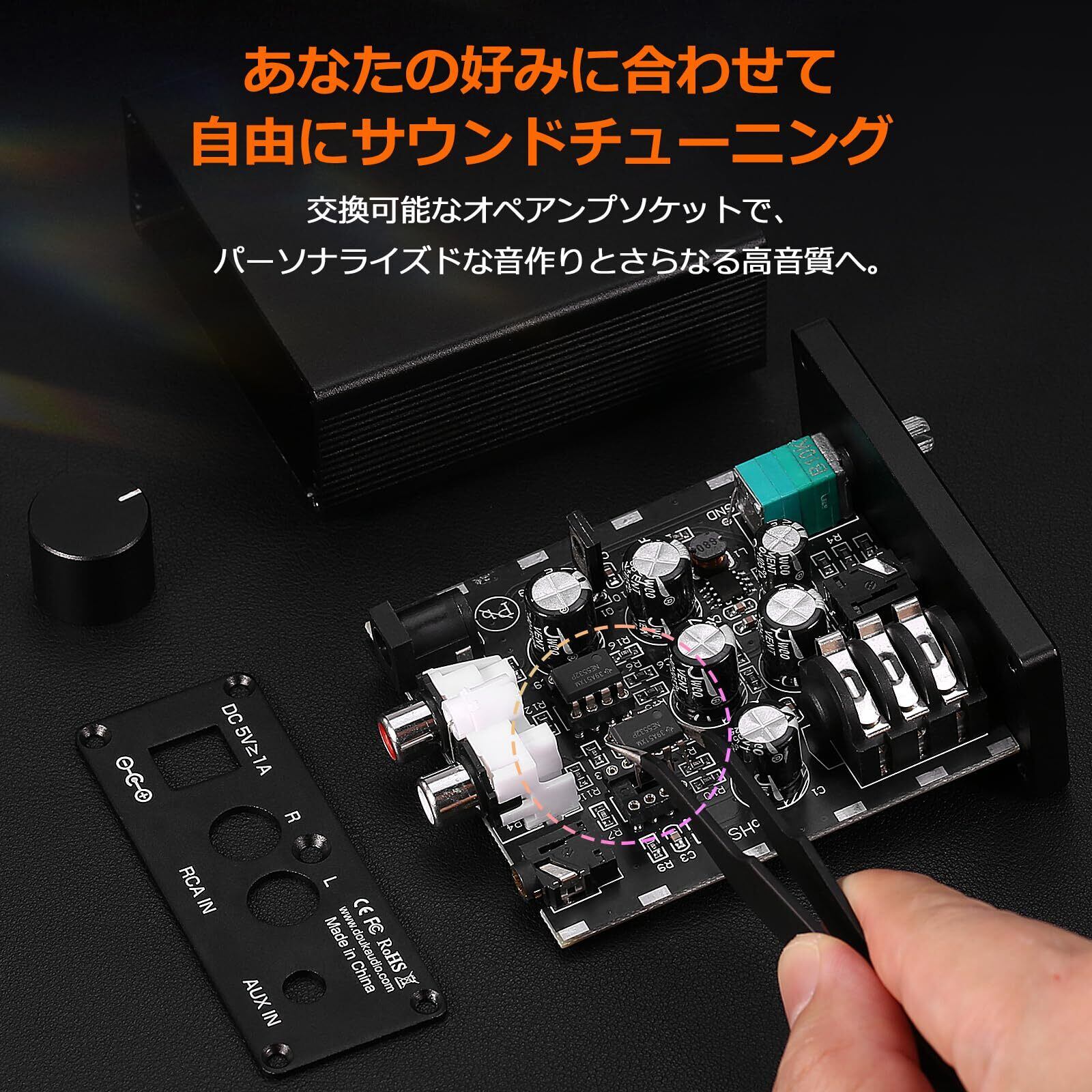【音質カスタマイズ機構】 差し替え可能なNE5532オペアンプを2基標準装備。8ピンDIPパッケージ規格に準拠した互換チップ(出力電流50mA以上)への交換が可能。音色調整例:LME49720NA採用で高域解像度向上、OPA2134PA採用で中域の厚み増加。ソケット実装方式のため、はんだ付け不要で工具を使わず交換可能。