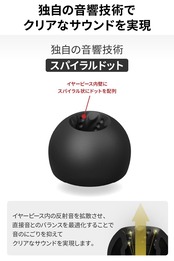 【独自の音質向上技術「スパイラルドット」によるクリアなサウンド】イヤーピース内壁にスパイラル状にドットを配列した、独自の音質向上技術「スパイラルドット」を採用。イヤーピース内の反射音を拡散させ、直接音とのバランスを最適化することで、音のにごりを抑え、クリアなサウンドを実現します。
