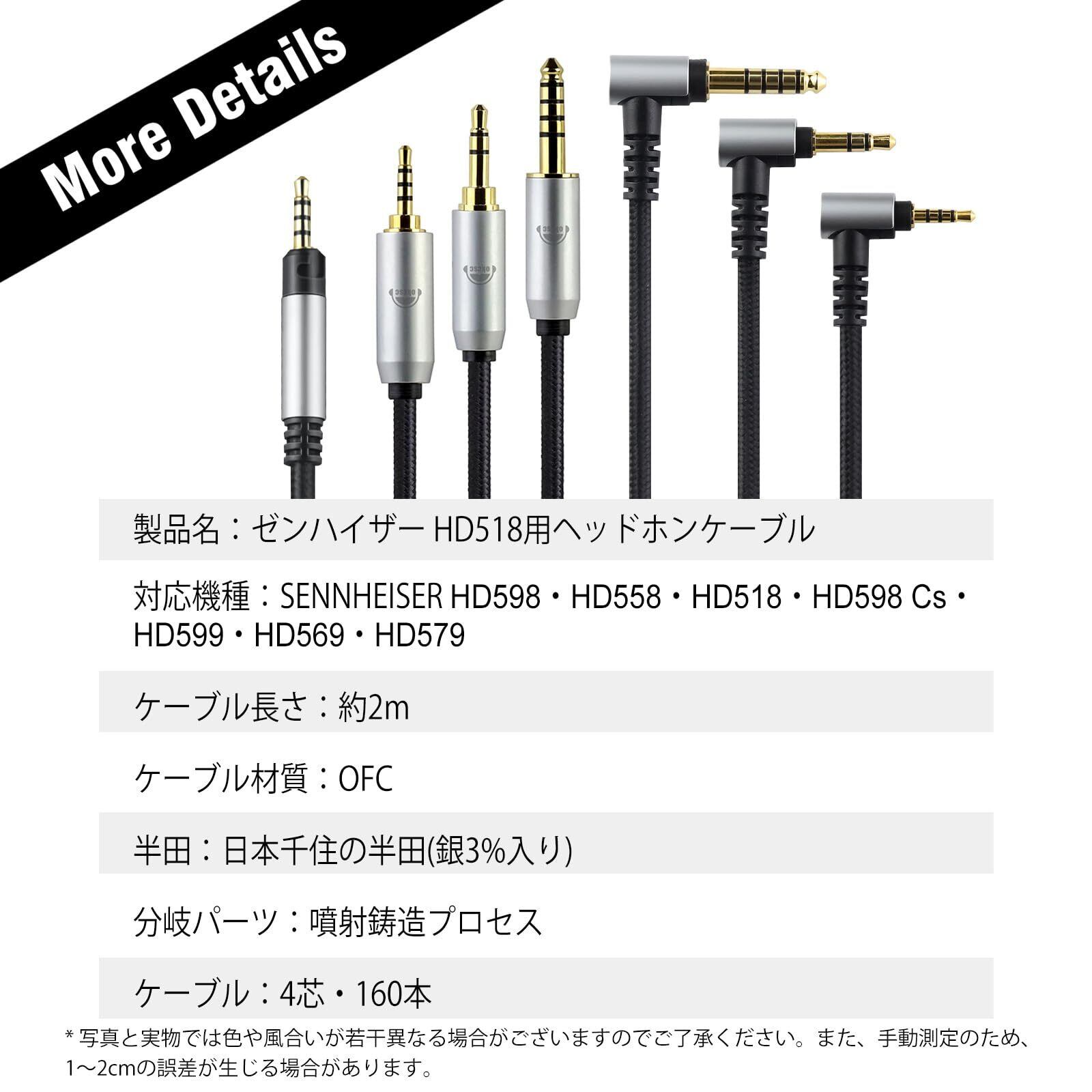 このケーブルは、SENNHEISERのHD598、HD558、HD518、HD598Cs、HD599にぴったりと対応しています。音質のカスタマイズをしたい方にとって、理想的なアイテムです。お手持ちのヘッドフォンを新たな音楽体験に引き上げてくれます!
