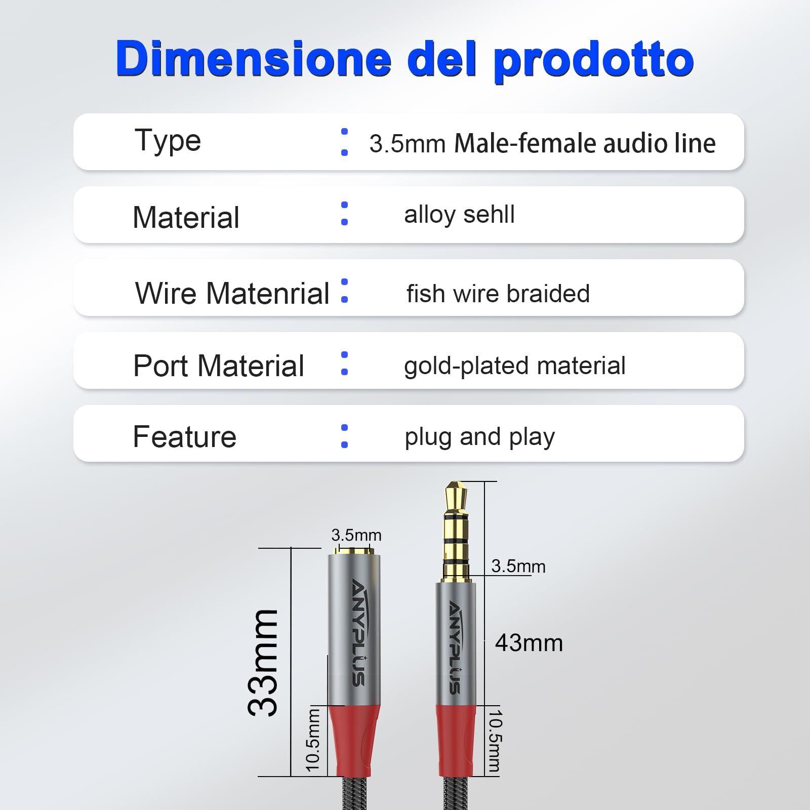 このANYPLUS イヤホン延長ケーブルで、豊かな音楽体験を楽しみ、サウンドの世界をお楽しみください!