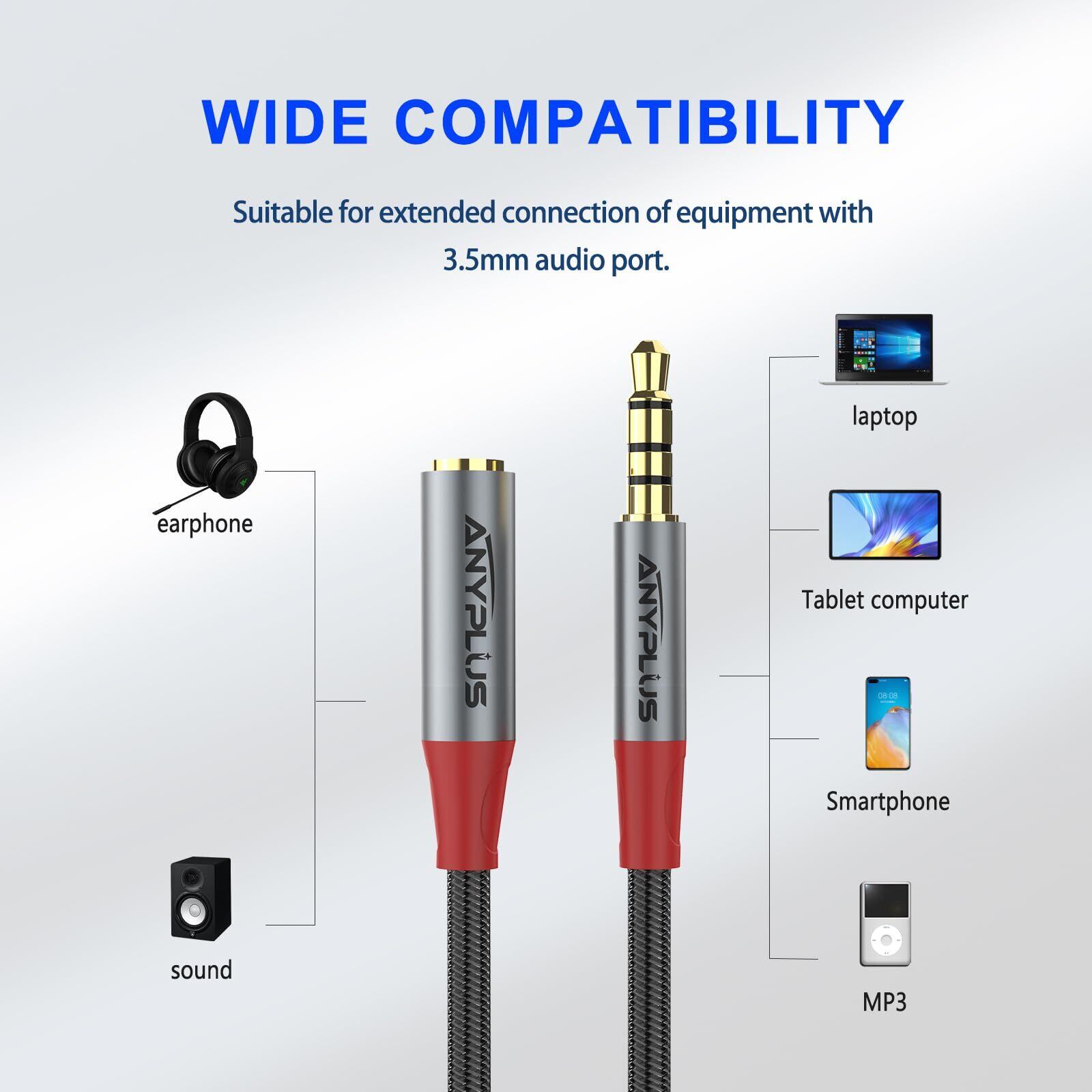 この延長コードは、すべての3.5mmプラグを備えたデバイスに対応しています。スマートフォン、タブレット、ラップトップ、ポータブルスピーカーなど、さまざまな機器との接続が可能です。音楽、映画、ゲームなど、多様なシチュエーションでご利用いただけます。