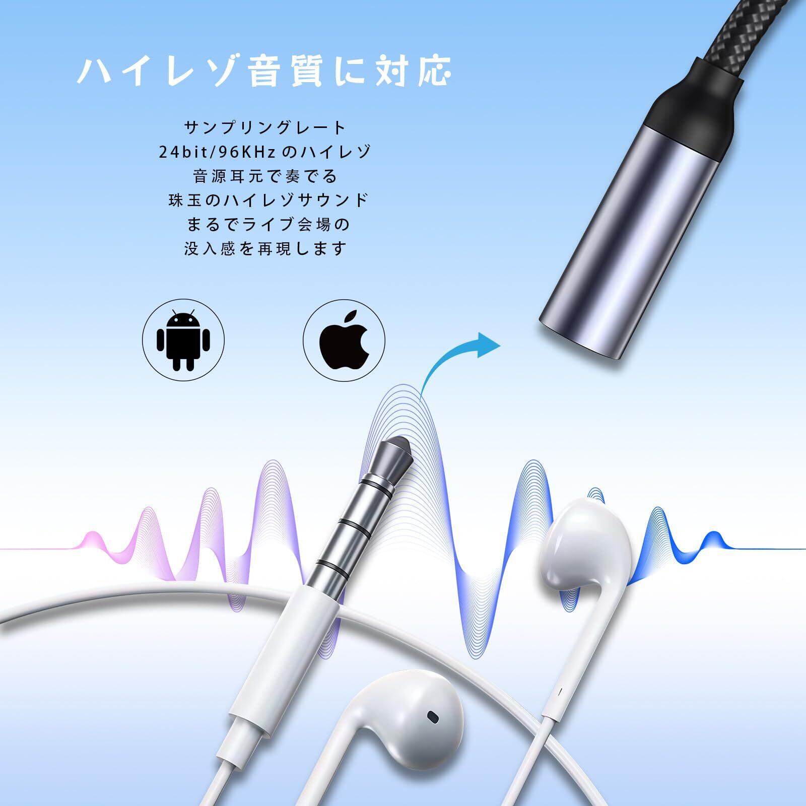 【2025アップデート版】USB C イヤホンジャック変換 ハイレゾ対応 音量調節/通話/音楽対応 DAC搭載 高耐久ケーブル i-Phone16/16Pro/15/15 Pro/Android/Type Cなど機器に適用(ブラック)