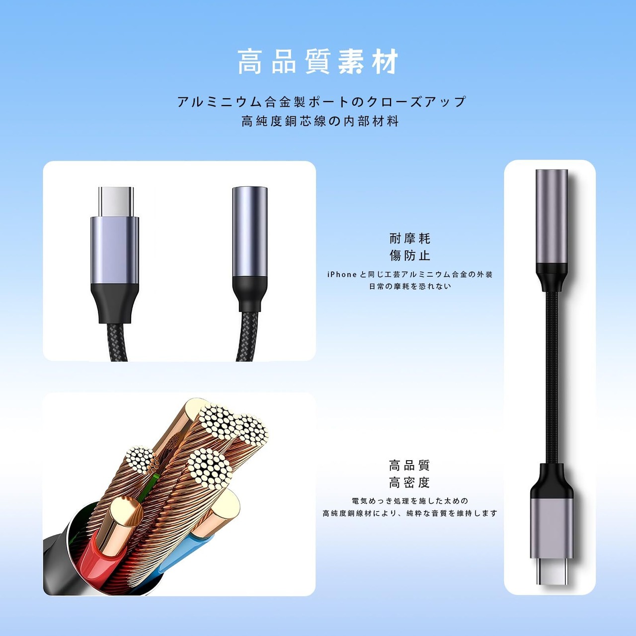 \【人気商品】【2025アップデート版】USB C イヤホンジャック変換 ハイレゾ対応 音量調節/通話/音楽対応 DAC搭載 高耐久ケーブル i-Phone16/16Pro/15/15 Pro/Android/Type Cなど機器に適用(ブラック)/
