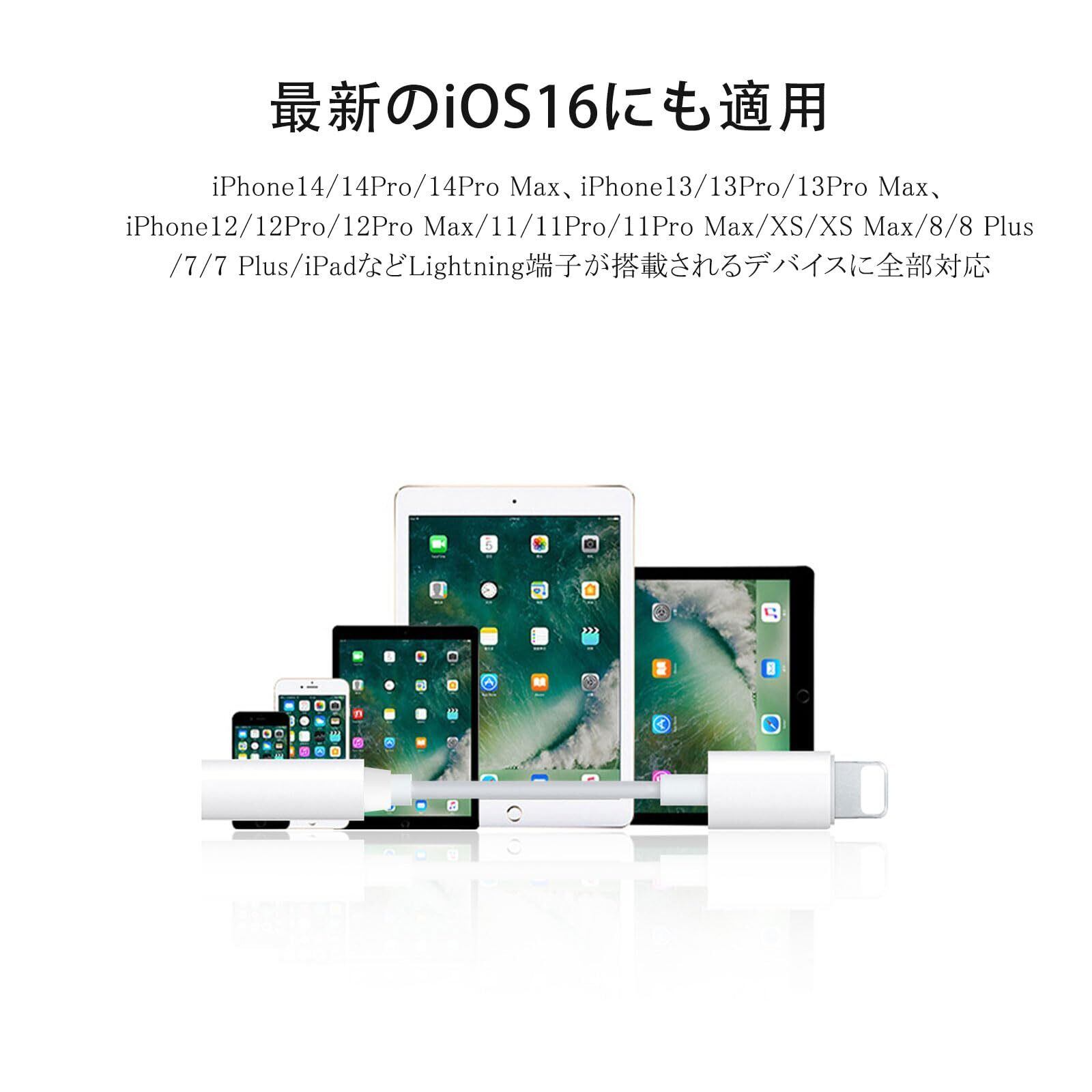 【優れた互換性】Lightningポートを装備したすべてのApple製デバイスに対応。iPhone14/14 pro/14 Pro Max/iPhone13/13 Pro/13 Pro Max/13 mini/iPhone12/12 Pro/12 Pro Max/12 mini/iPhone11/11Pro/11 Pro Max/SE(第2/1世代)/iPhoneX/XS/XS Max/XR/8 Plus/8/7などすべてのiPhoneに対応します。最新のIOS17にも対応します。