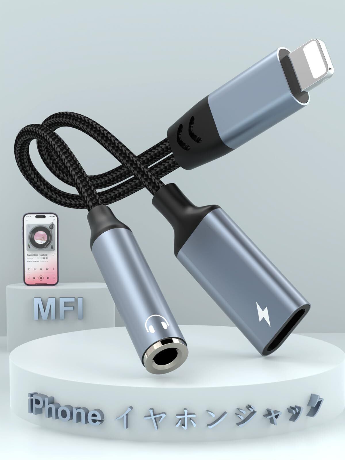 【在庫セール】【2025新設計】2in1 iPhone イヤホン変換アダプタ Lightning - 3.5mm イヤホン 変換ケーブル MFi認証 2イン1 充電 音楽を聴く 変換アダプタ 内臓チップ 3.5MM 交換 急速充電 ナイロン織 音量調節 iPhone14/13/SE/12/11/XS MAX/XS/X/8/8plus/7/ 7plus, iPad適用