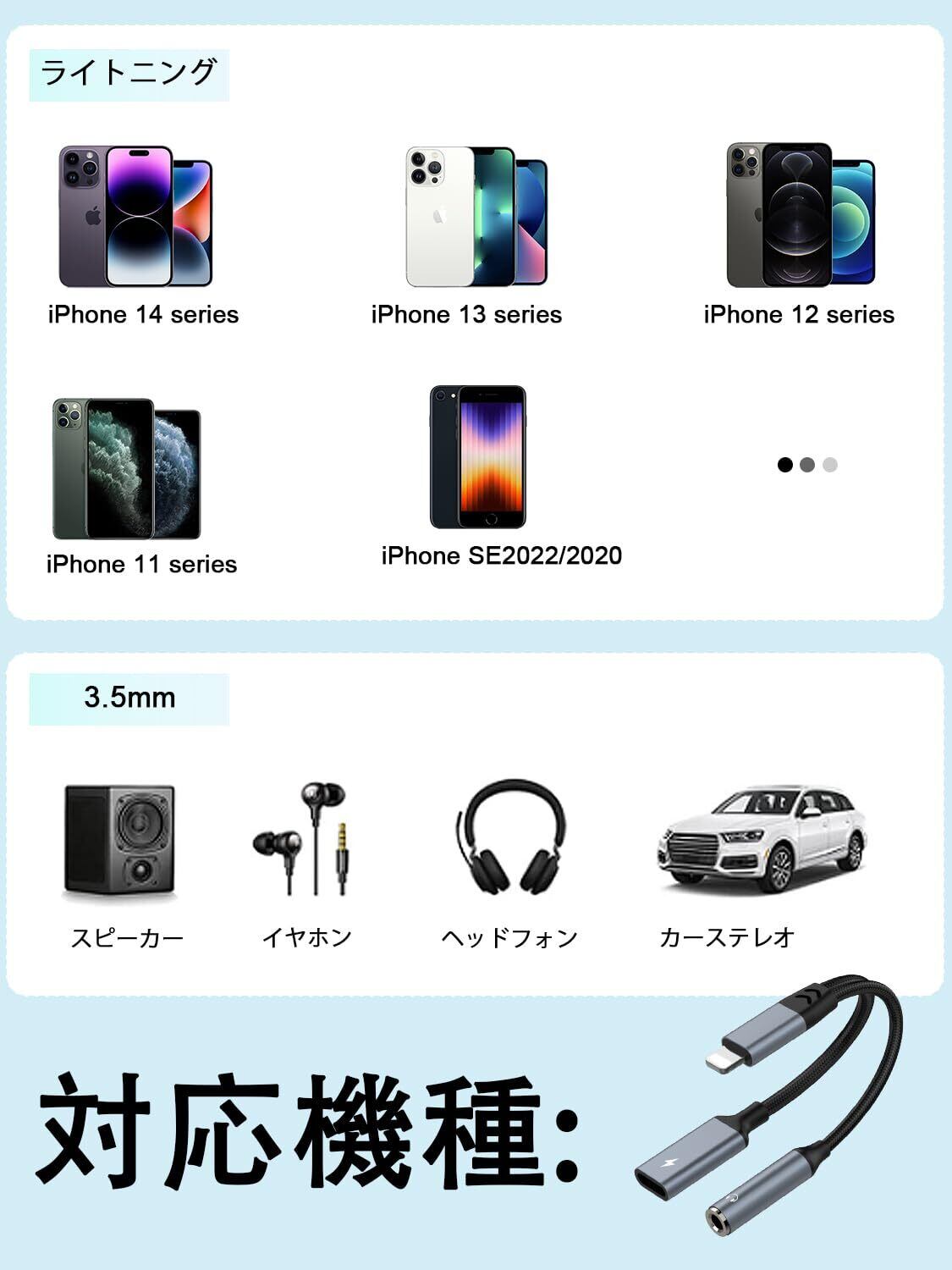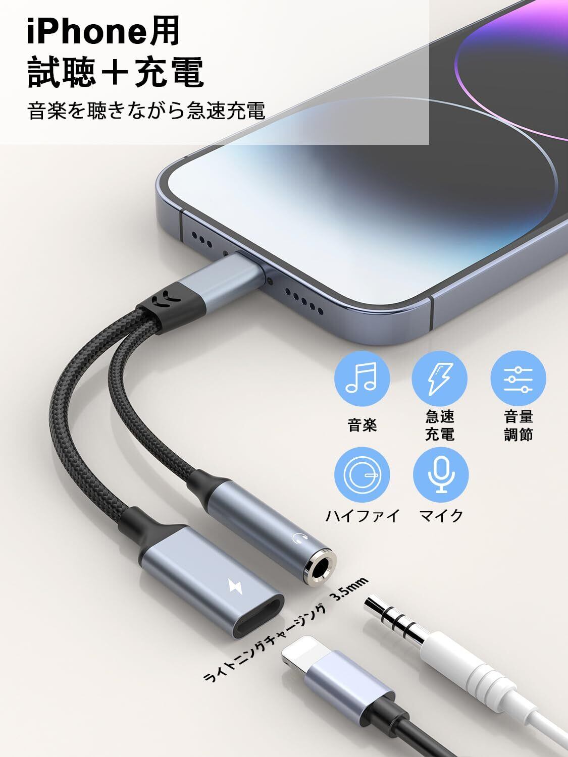 【2025新設計】2in1 iPhone イヤホン変換アダプタ Lightning - 3.5mm イヤホン 変換ケーブル MFi認証 2イン1 充電 音楽を聴く 変換アダプタ 内臓チップ 3.5MM 交換 急速充電 ナイロン織 音量調節 iPhone14/13/SE/12/11/XS MAX/XS/X/8/8plus/7/ 7plus, iPad適用