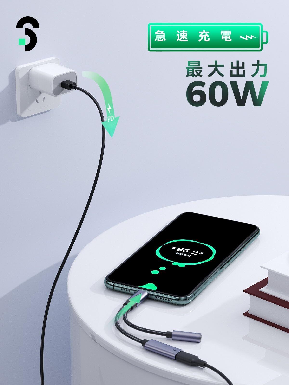 この2-IN-1 USB C イヤホンジャック変換器は、60WのPD急速充電をサポートしており、音楽を聴きながらデバイスを充電することが可能です。忙しい日常でもストレスなく、充電と音楽を同時に楽しむことができます。