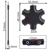 leeyovk マルチイヤホンスプリッター 3.5mmイヤフォンジャック分配器 イヤホン分配/分岐 3.5オーディオ5出力6端子メス接続器 オーディオイヤフォンプラグ 3.5mmステレオ延長線付き (黒)スマートフォン・ゲーム機・音楽機器対応