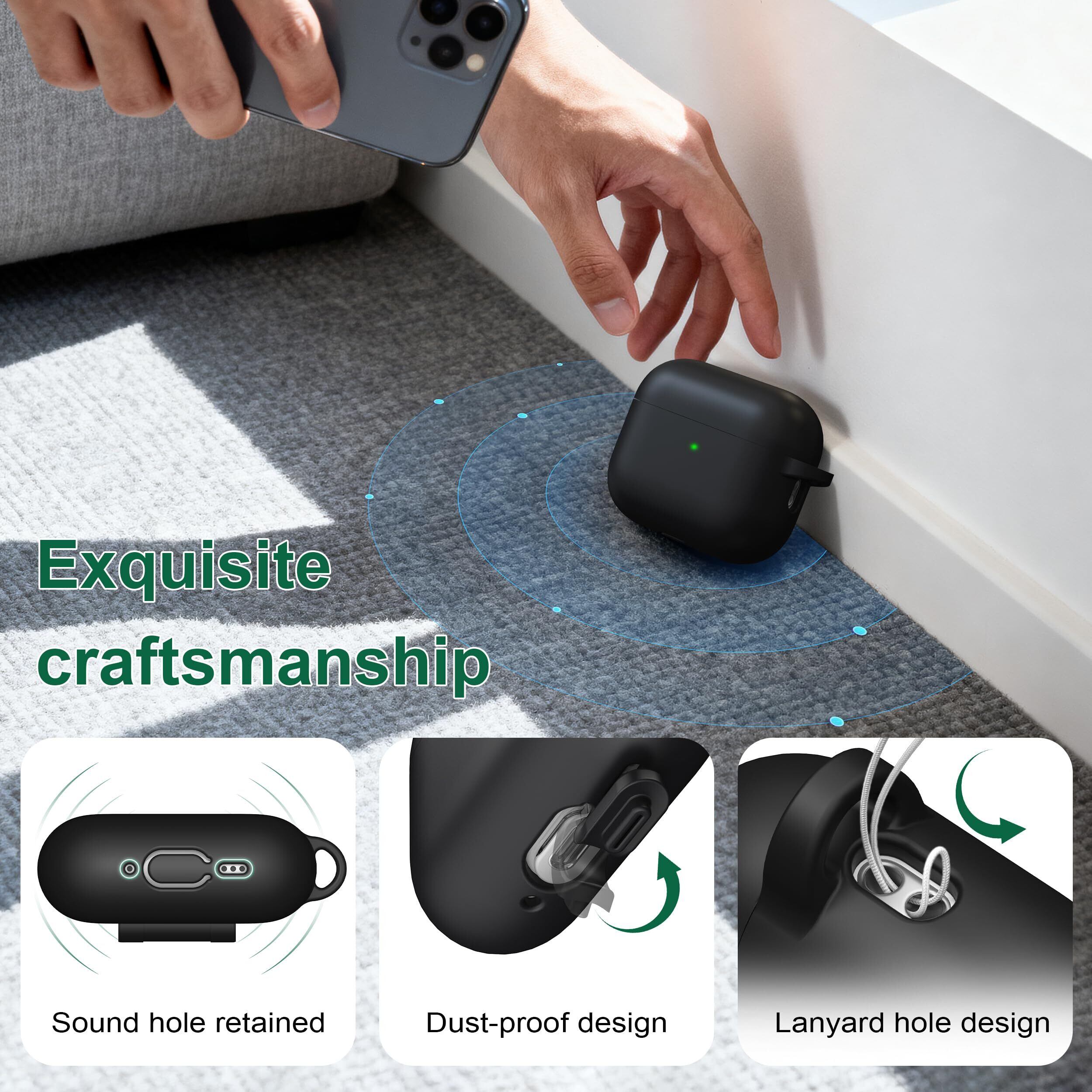\【新着商品】R-fun AirPods Pro 3ケース (2025) ソフトシリコン保護ケースカバー Apple AirPods Pro 第3世代 (USB-Cケーブル付き) 対応 女性 男性 クリーニングキットとキーチェーン付き, ブラック/