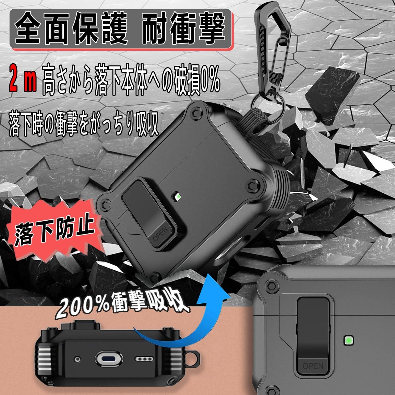 \【人気商品】OJBSEN AirPods Pro3 ケース 2025 AirPods Pro 第3世代 ケース 安全ロック付き 自動ボタン えあーぽっつ プロ3カバー クリーナーキット付き エアーポッズプロ3カバー ワイヤレス充電対応 LEDライトが見える カラビナ付き ハード TPU 分離式 全面保護 耐衝撃 傷防止 軽量 T(ブラック)/