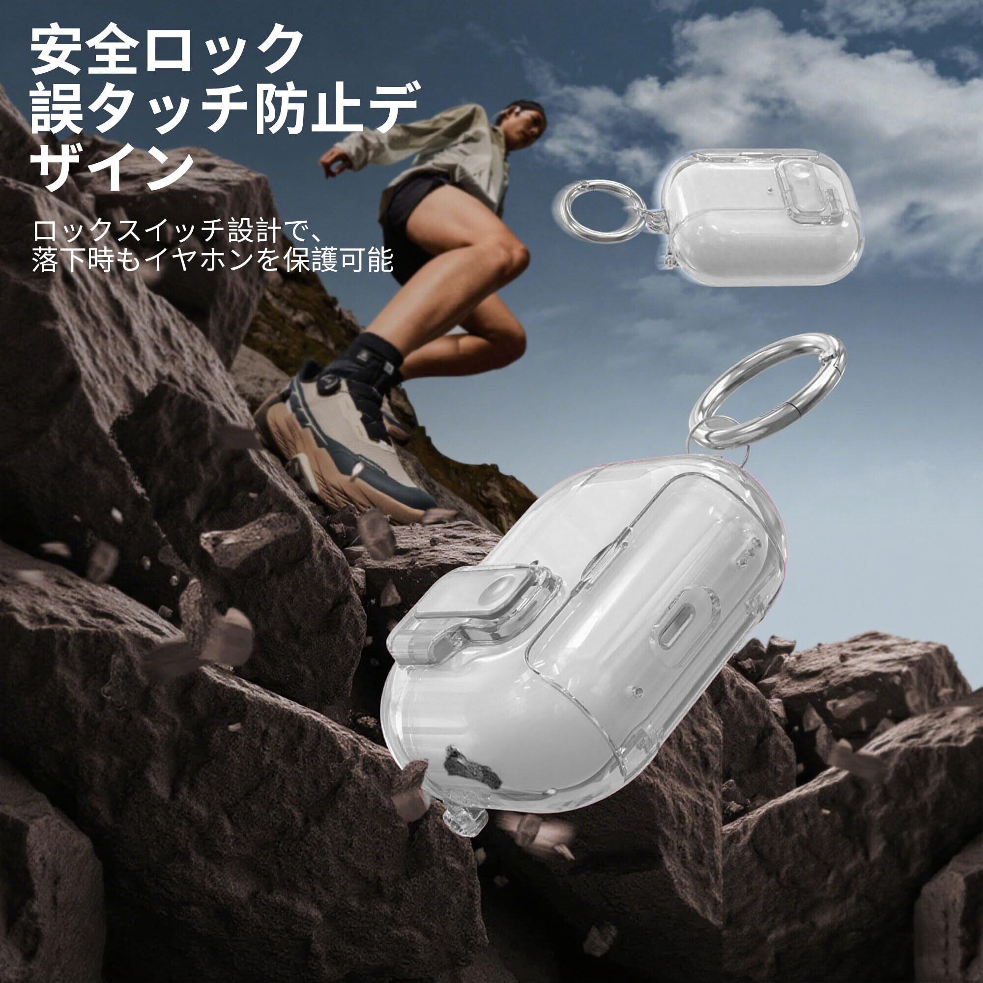 【特価セール】【2025年度 先行発売】YXHH新登場 AirPods Pro 3 用 ケース 自動スナップスイッチ付き 全面保護カバーTPU 耐衝撃 収納 軽量 撥水 防塵 キズ防止 充電対応 紛失防止 旅行 カラビナ付き AirPods Pro 第3世代 対応 保護ケース(クリア)